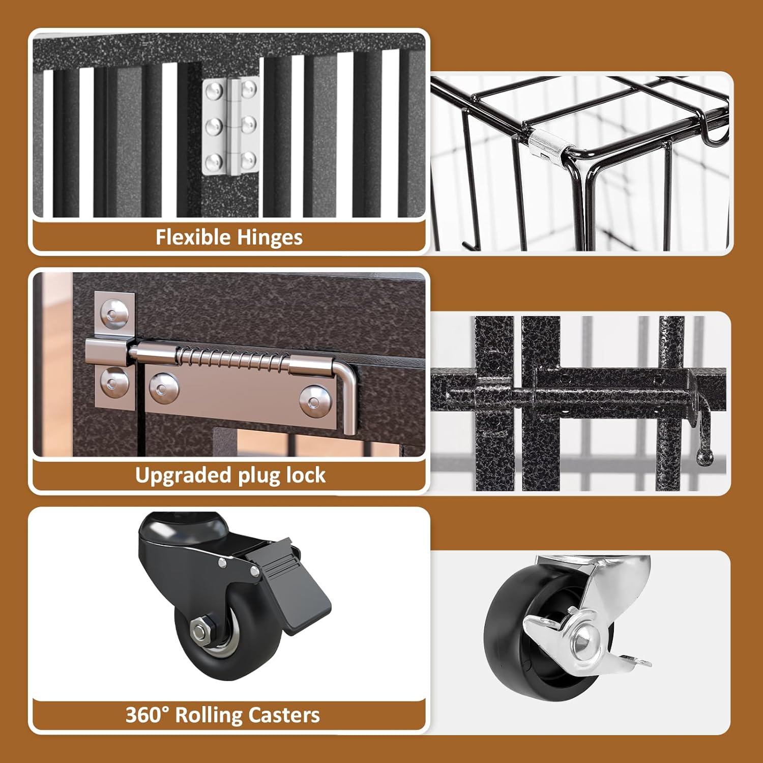 - Safe and Durable Protection: Coated with a durable hammer-tone finish, this dog cage resists rust and corrosion, making it suitable for both indoor and outdoor environments. The non-toxic frame coating guarantees your pet’s safety, even if they chew or lick the crate.