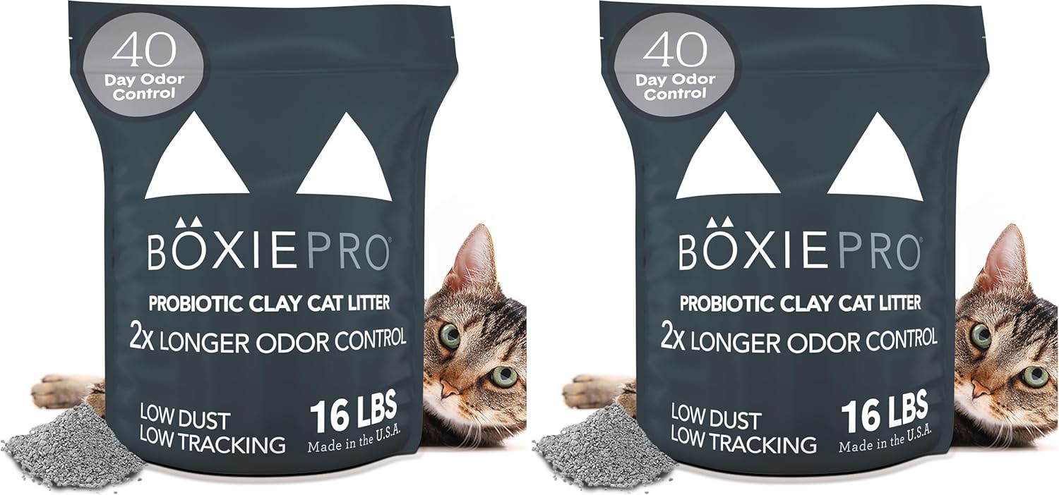 Boxie® Probiotic 40 Day Natural Odor Control Cat Litter, 16lb Clumping Clay Kitty Litter (Pack of 2)