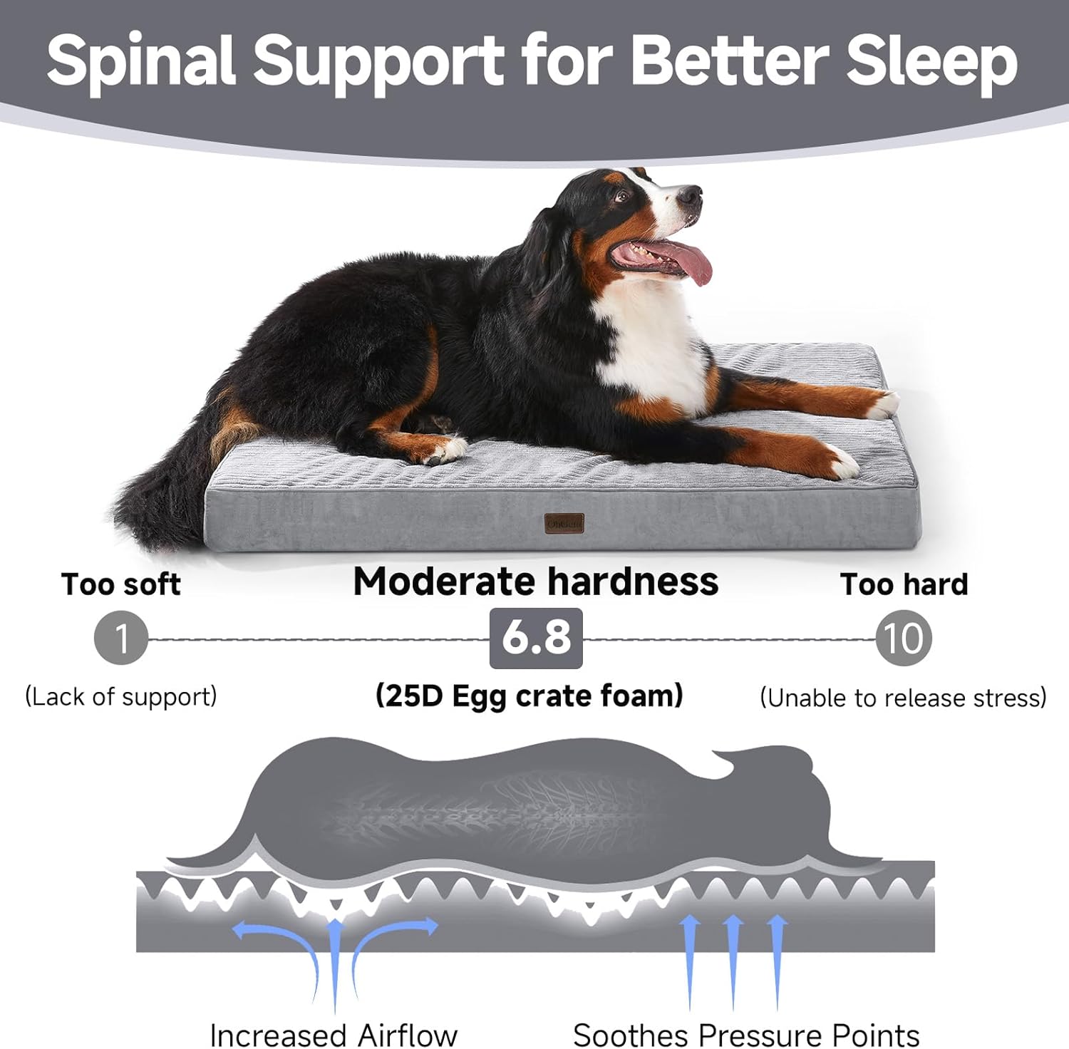 OhGeni Orthopedic Waterproof & Machine Washable Dog Bed for Extra Large Pets, Suitable for Crates, Cat Mat with 25D Egg Crate Foam, Non-Slip Bottom & Removable Cover, Invisible Zipper, 47 Inches(Gray)
