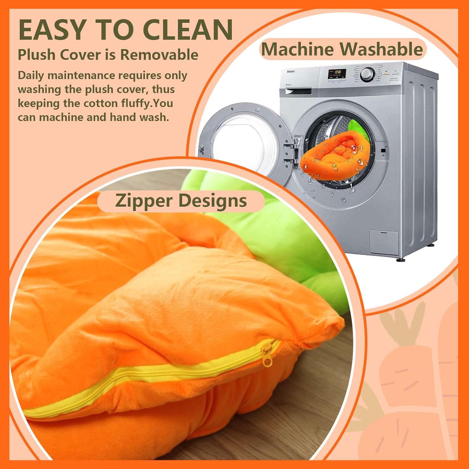 - π[MACHINE WASHABLE]:If you find a bit of dust on the rabbit bed, you can just wash the plush cover. Because our rabbit bed has a zipper design, the plush cover is removable. If the whole thing is dirty, you can just throw the rabbit bed into the washing machine.