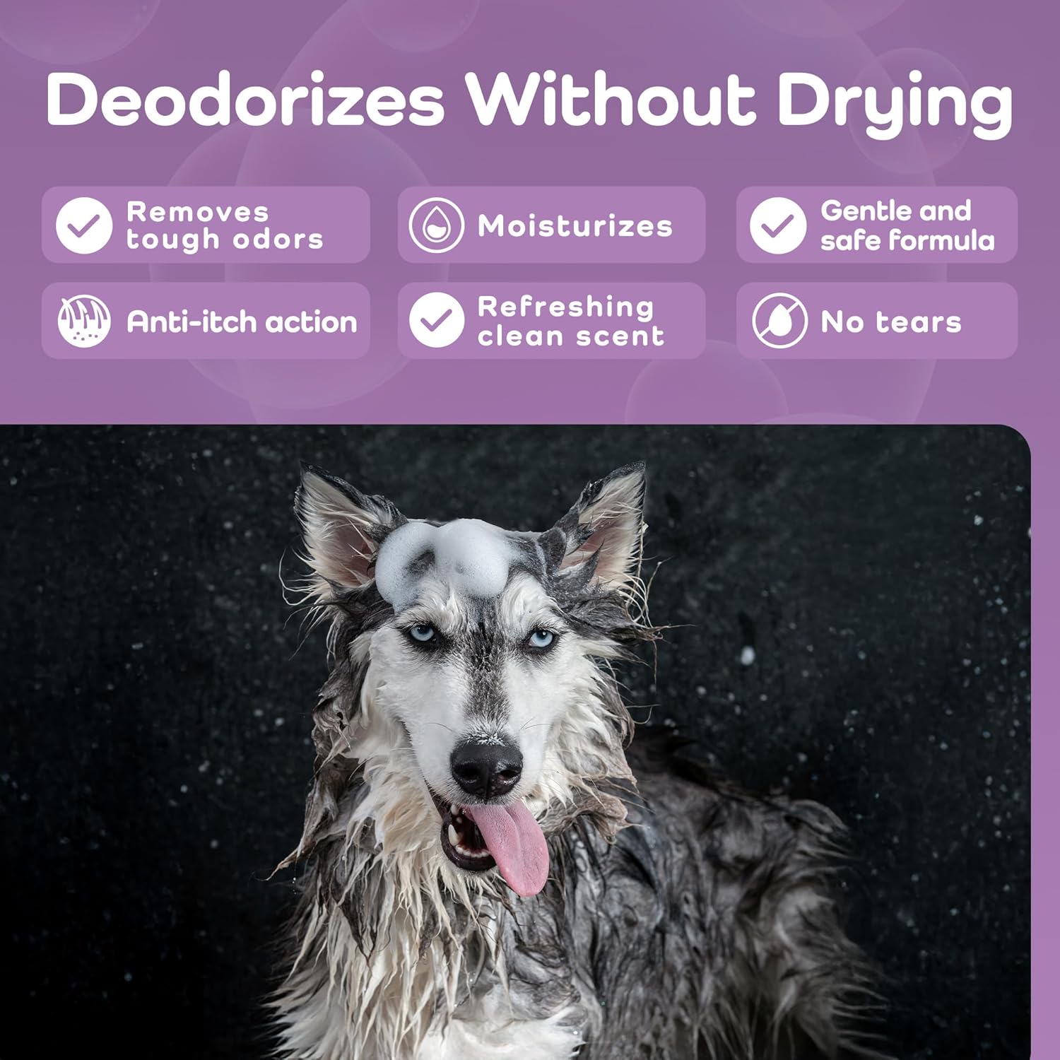 - Enhanced Coat Support – Developed to nourish and reinforce your dog’s coat with aloe vera, argan oil, chamomile, and grape extract, this hydrating dog shampoo supports thick and short fur alike. Regular use leaves coats noticeably softer, shinier, and smelling fresh—perfect for dogs with double coats, such as Siberian Huskies, Labrador Retrievers, Golden Retrivers, German Shepherds, and Pembroke Welsh Corgis.