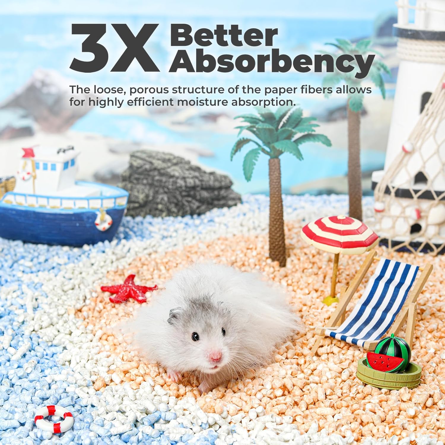 - 3x Better Absorbency – The loose, porous structure of the paper fibers allows for highly efficient moisture absorption. When spread 2-3 cm thick at the bottom of the cage, it effectively absorbs moisture and neutralizes odors, keeping your pet's living space dry and fresh.