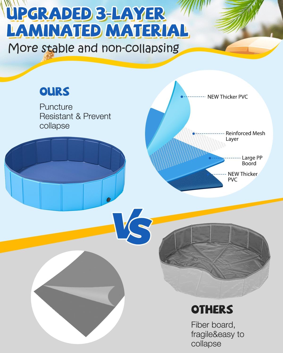 - Warm Tip:To protect the dog pool from scratches, trim your dog’s nails before use—ideal for excited pups who love to dig and splash.