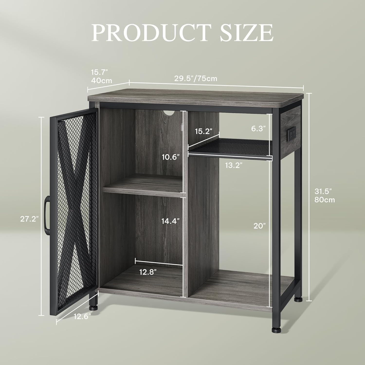 YITAHOME Fish Tank Stand with Power Outlets & LED Light, 20-29 Gallon Metal Aquarium Stand with Cabinet for Fish Tank Accessories Storage for Turtle Tank, Reptile Terrarium, 350LBS Capacity, Grey