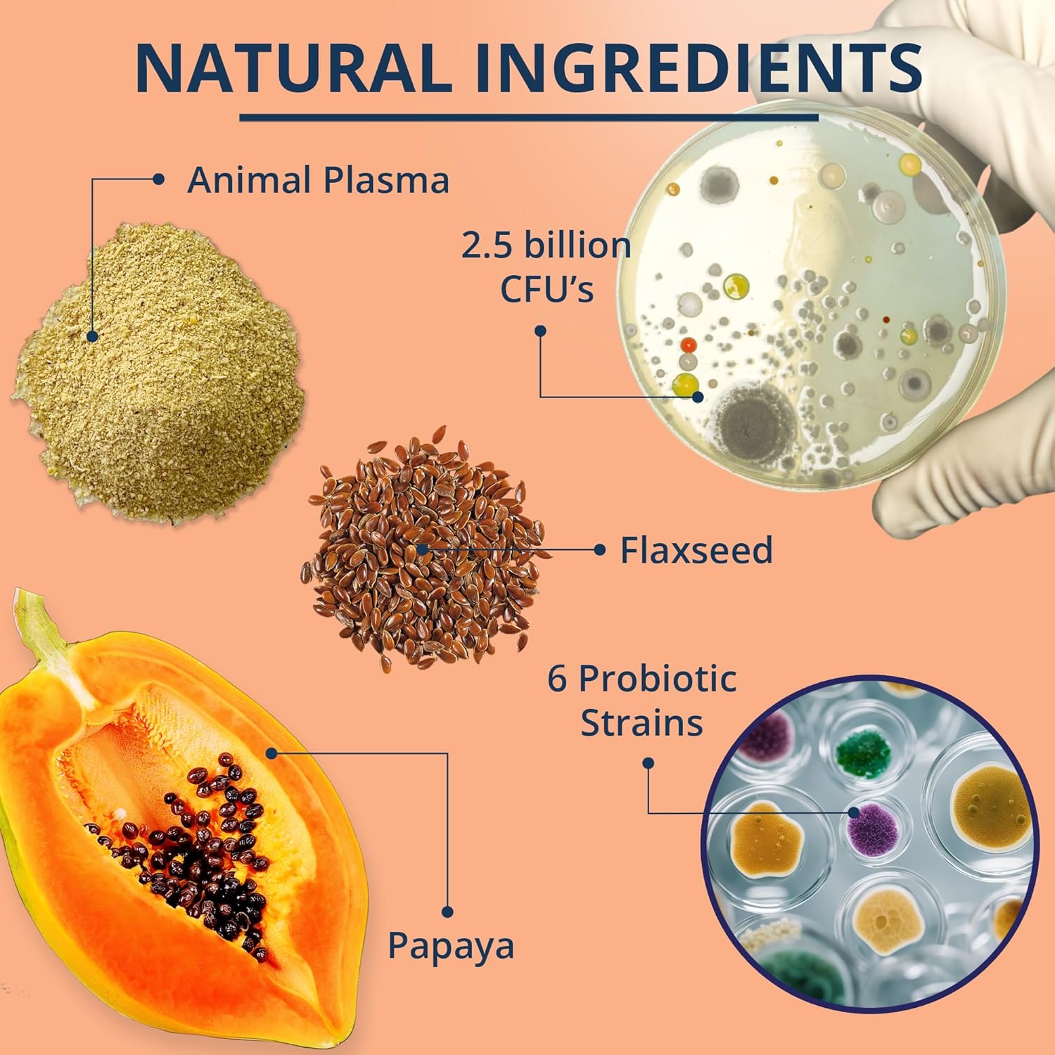 - πΏ PROBIOTICS & FIBER BLEND: Combines 6 probiotic strains, pumpkin, and flaxseed to deliver 2.5 billion CFUs for optimal gut health.
