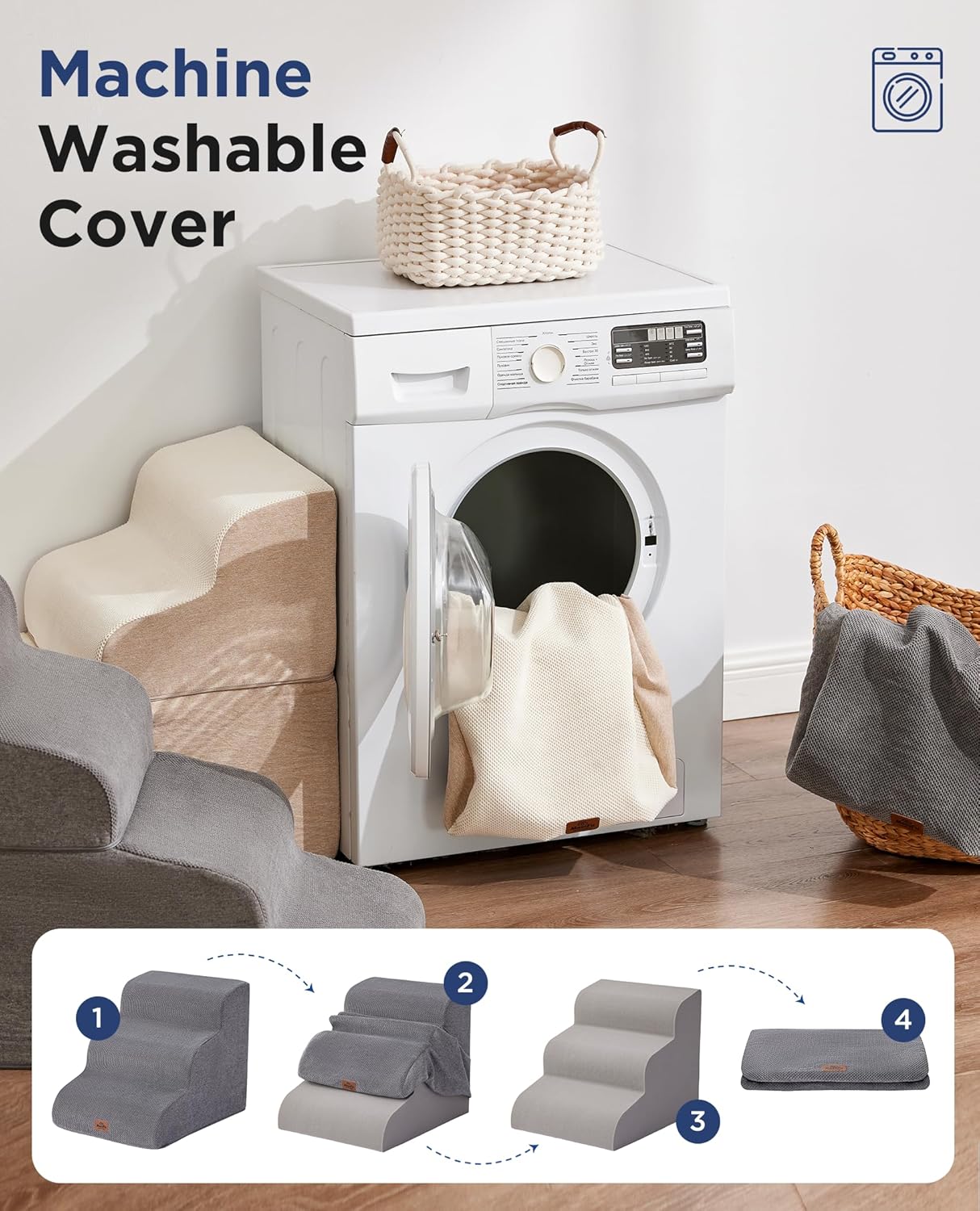 - EASY TO CLEAN - The dog step has a removable washable cover made of bonded fleece that can be hand washed or machine washed, so you don't require spending a lot of time cleaning it. It's very convenient.