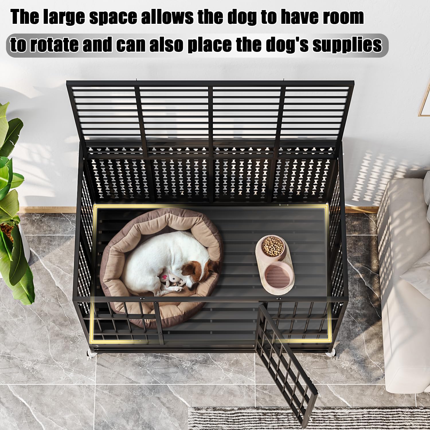 - Two-Door Design for Better Interaction: It is important to build the bond between a dog's owner and dog. That's why we've incorporated a two-door design to make interactions easier—the front door is designed for dogs to enter and exit with ease. The top door gives you a convenient way to feed, interact, and clean the crate without hassle.