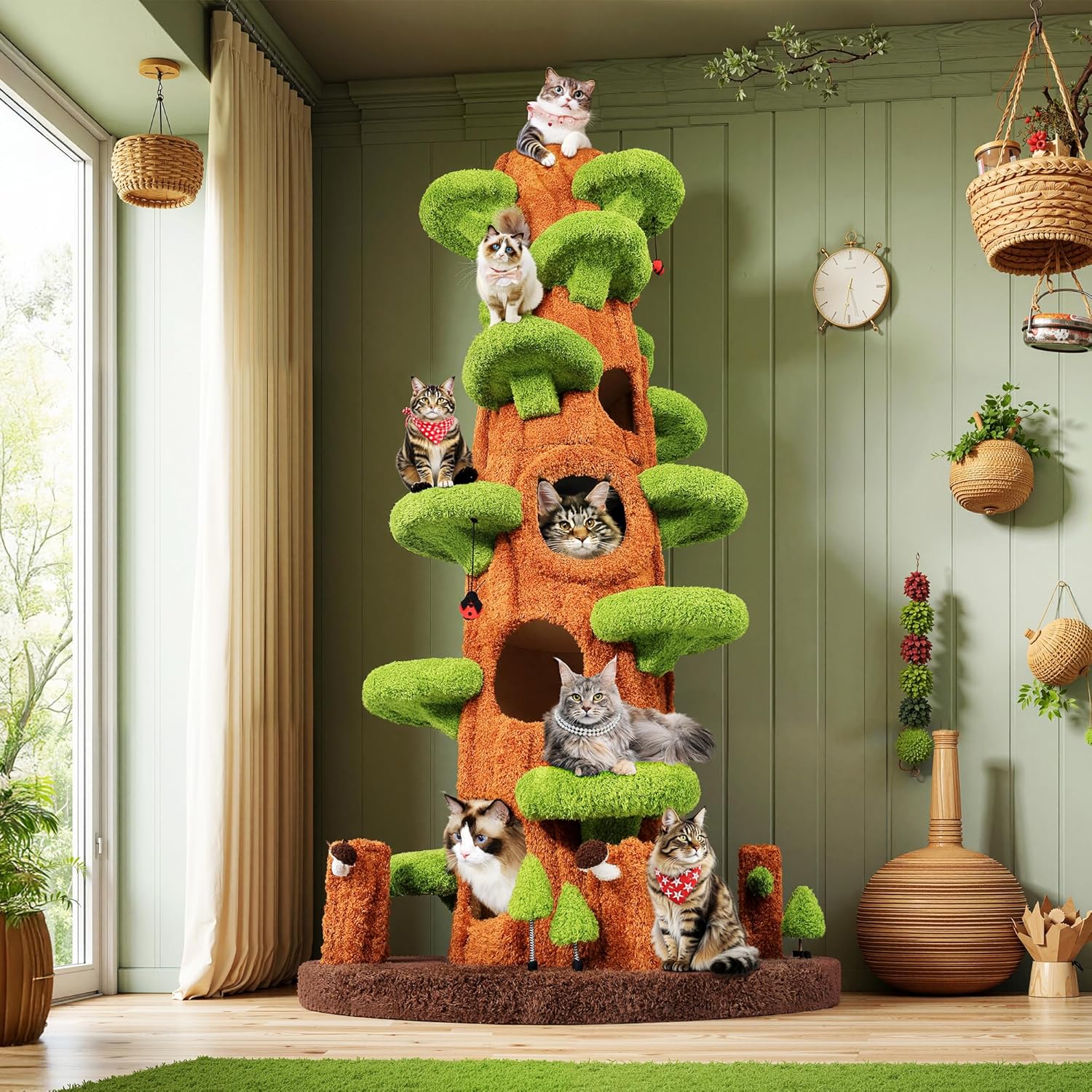 NUNU Super Large Cat Tree Tower – All-in-One Tall Cat Tower with Scratching Post, Luxury Multi-Level Solid Wood Cat Condo for Indoor & Multi-Cat Families