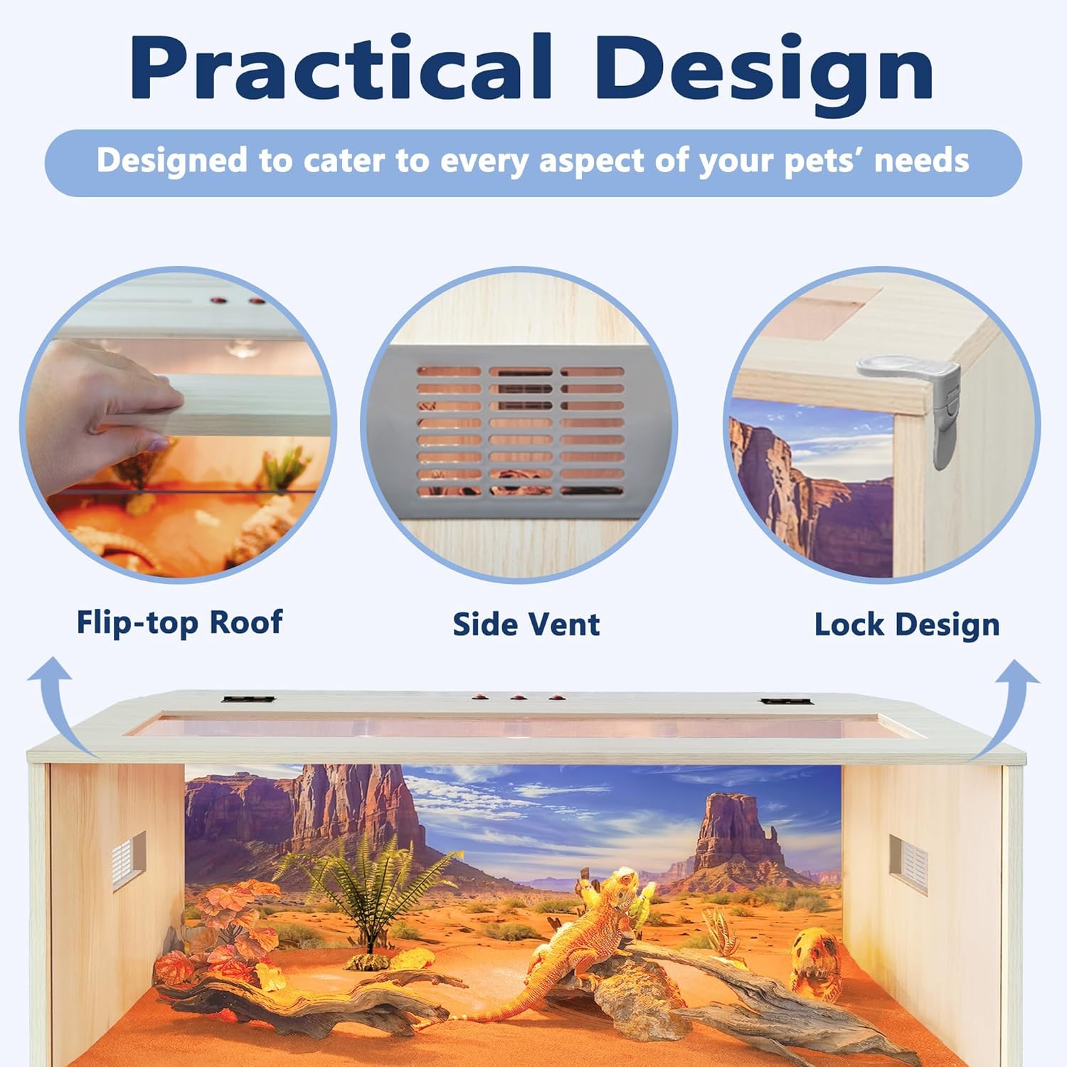 - 【Top-Quality Craftsmanship】Crafted from top-tier pet-friendly wood and acrylic, this habitat boasts durability and elegance. The high-density natural wood, coated for resistance against corrosion and water, showcases beautiful grain patterns. Its waterproof acrylic bottom sheet protects against accidents involving water or moisture.