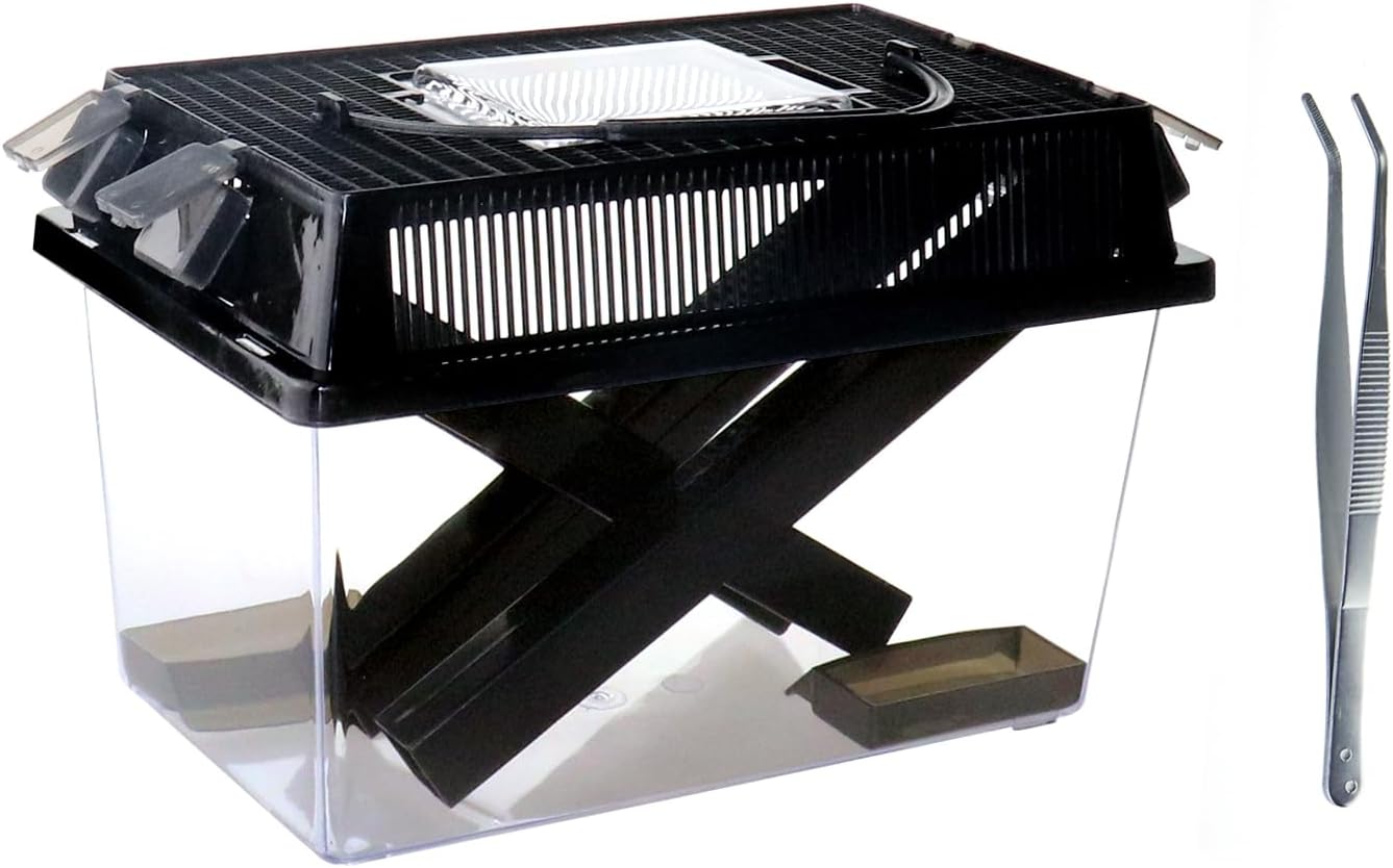- The cricket care kit is specifically designed for feeding insects and mixing reptile feed.Equipped with a food feeding tub (includes food dish) and a water feeding tub(includes water bowl). With a black hiding tube and a handheld design, it is easy to carry when going out.