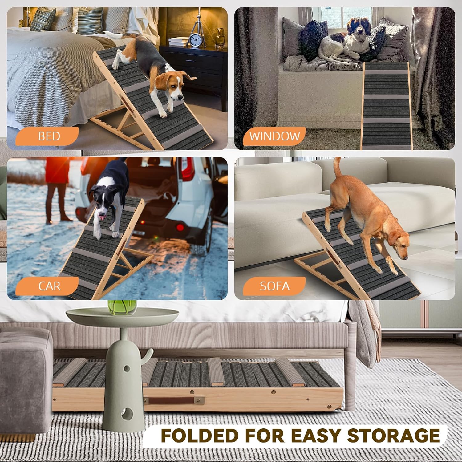 - Adjustable & Easy-to-Use: With dimensions of 30.9" L x 18.5" W x 25.6" H, it's suitable for small to large pets. Adjustable height and ramp incline are ideal for medium and large dogs or cats, while stairs accommodate pets of all sizes.