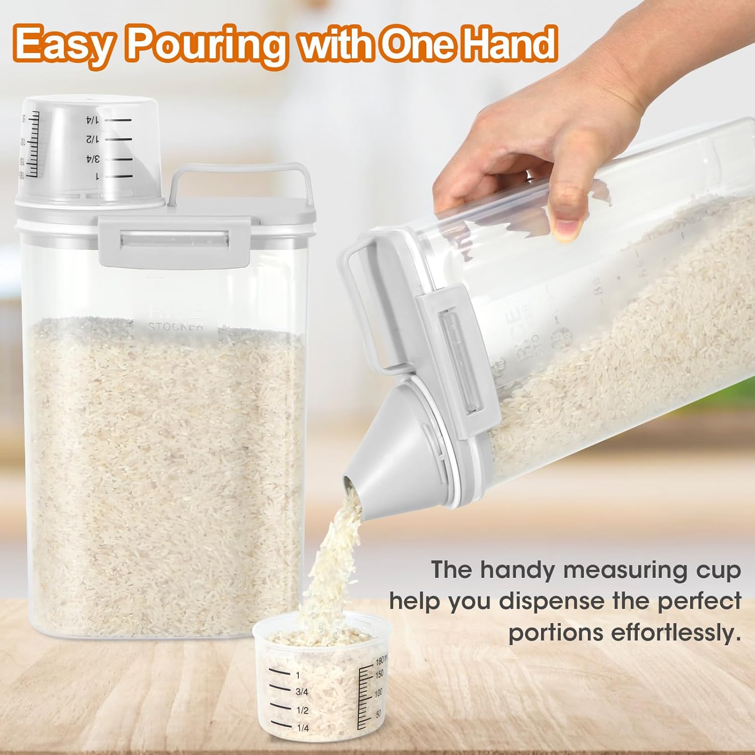 - VERSATILE STORAGE CONTAINER: TBMax rice container are ideal for storing dry food like rice, flour, cereal, sugar, grains, nuts, beans, snack, pet food and more; Each rice container normally can hold 4 lbs of rice and 2 lbs of pet food; Capacity will vary depending on different food
