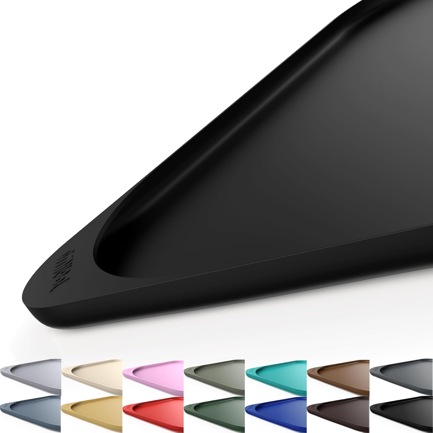 Silicone Pet Feeding Mat with Raised Edge & Residue Collection Pocket for Food and Water, Dog Bowl Mats, Cat Bowls Placemat with High Lip for Floor Waterproof, 24 x 16 x 0.8 Black