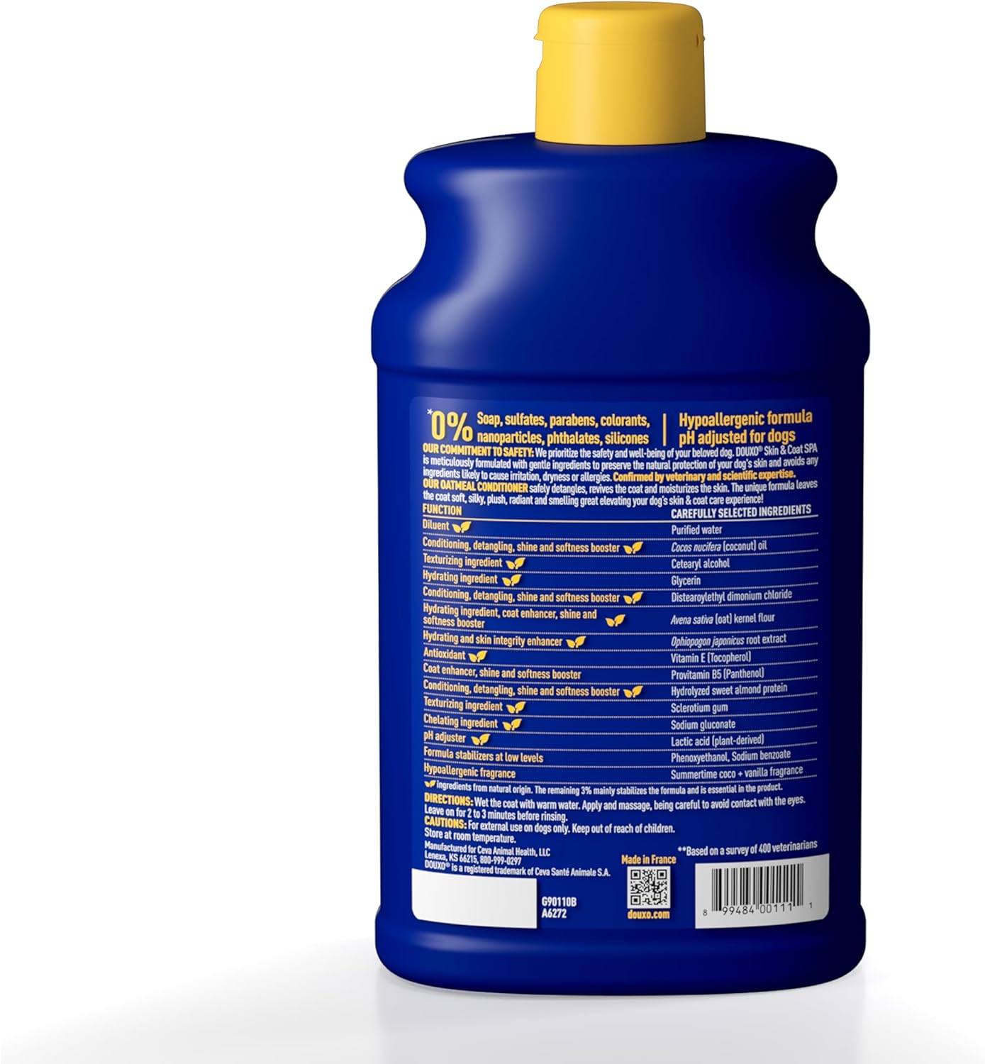 - 97% NATURAL ORIGIN INGREDIENTS & 0% HARMFUL INGREDIENTS: DOUXO Skin & Coat SPA Conditioner is free from harsh ingredients and controversial chemicals, providing an ultra-safe, gentle clean that’s kind to your pet's skin.