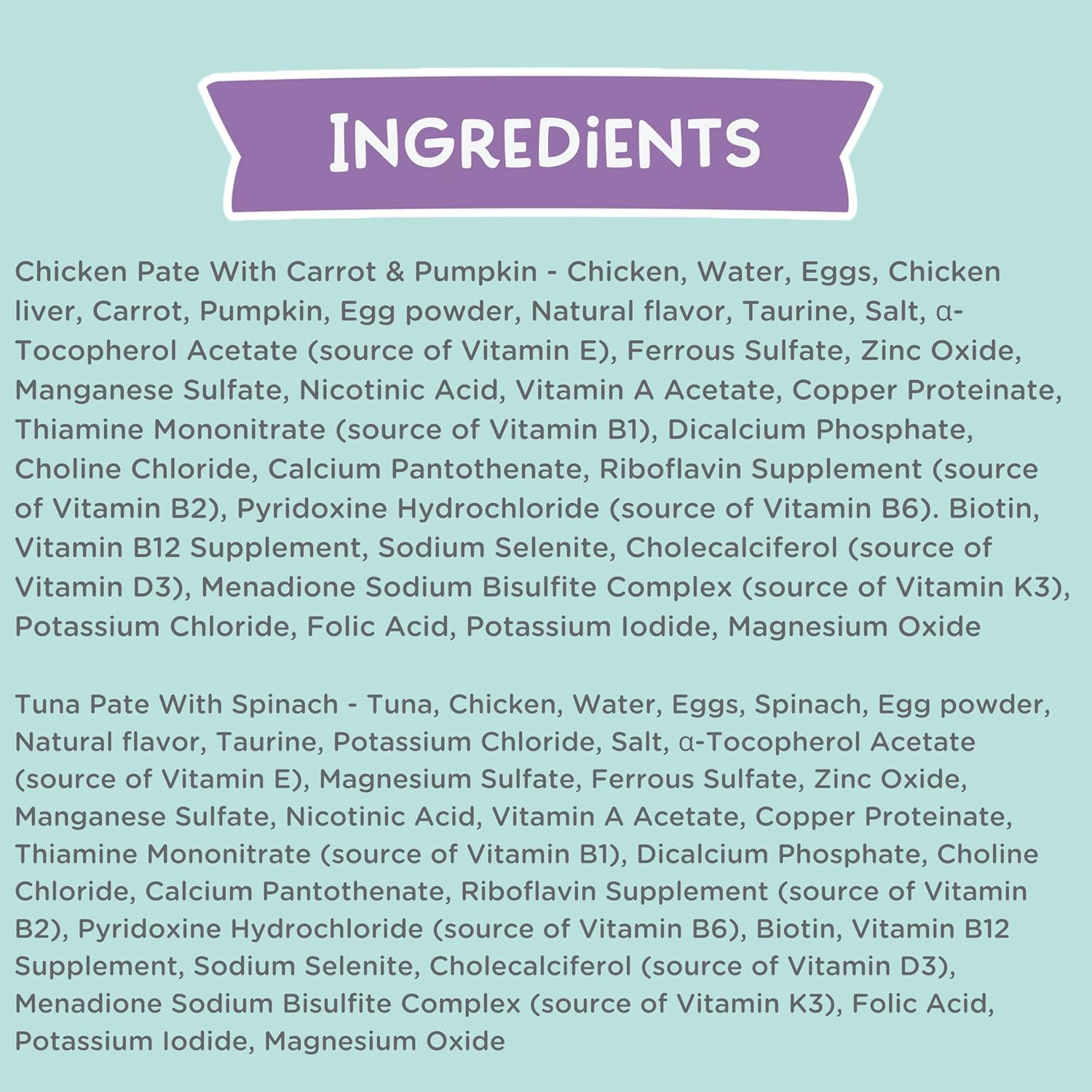 - GRAIN FREE & NON-GMO: Our pate tuna, carrot, & salmon is prepared without any grains, artificial additives, or by-products, as our goal is to feed cats the way nature intended. We always source wholesome ingredients to promote optimal health and nutrition