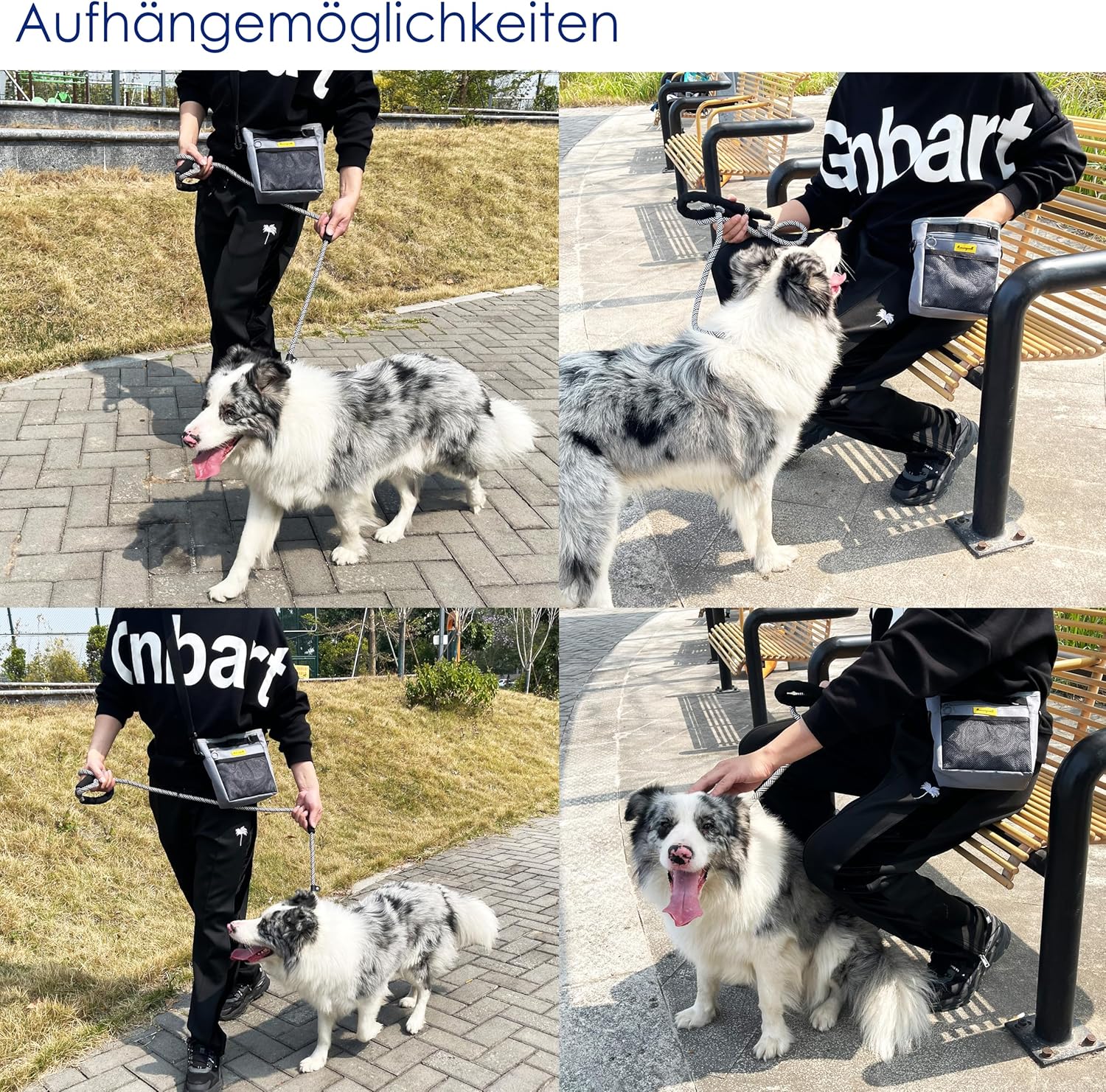 - 3.Enhanced Magnetic Closure: The bag features two sets of powerful magnets at the opening, ensuring automatic closure and preventing food from spilling, even when bending over. A convenient pull tab allows for one-handed opening when you need access to the contents of your dog treat pouch. The strong magnets make it a perfect solution for training and walking, ensuring your treats stay secure in the dog treats holder for training.