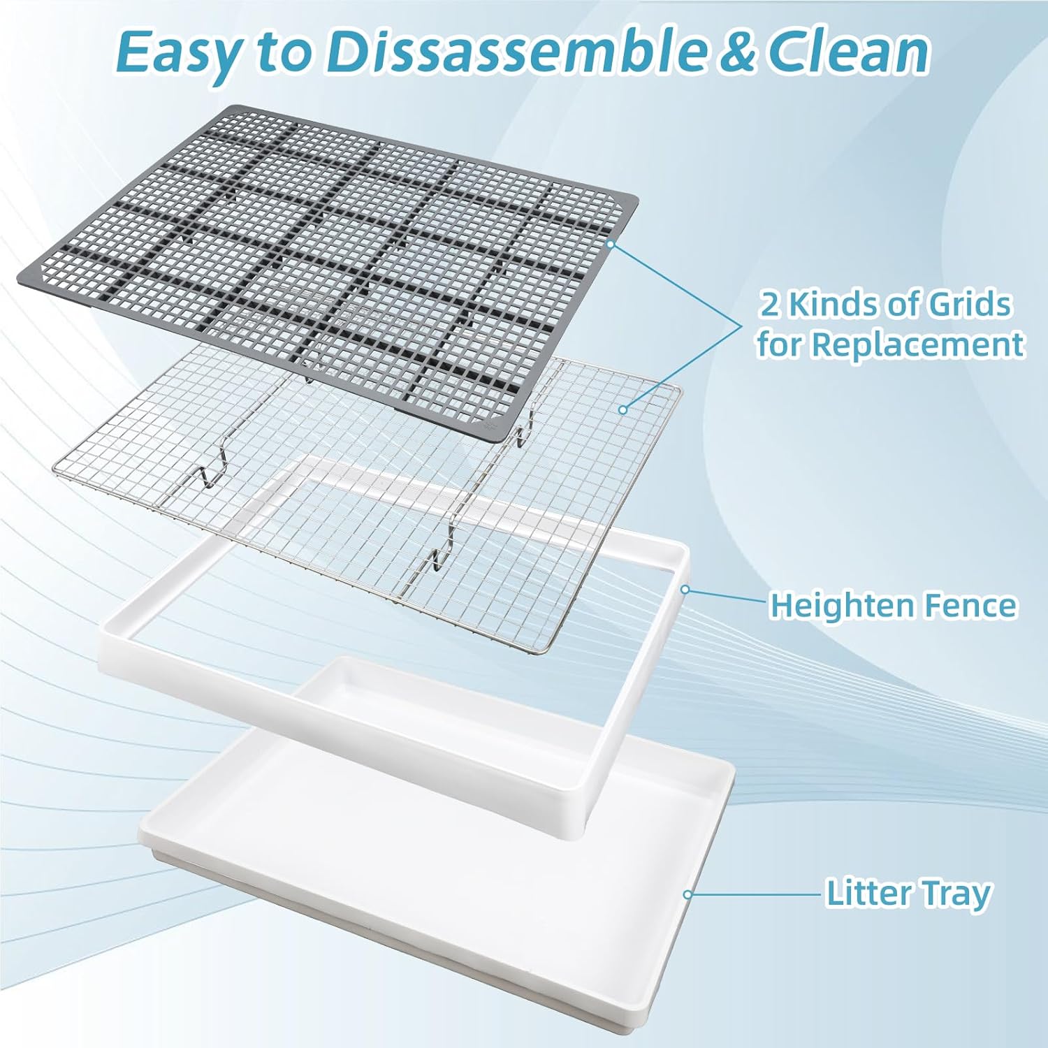 - Premium Material and Easy Cleaning: The pet litter box Made of high-quality thickened PP plastic body + stainless steel mesh, safe and odor-free, with smooth edges to ensure durability and pet friendly;Itโs been a breeze to clean- just simply pick it up, dump contents, wipe or wash with vinegar and water to remove pee stains, and place it back in your cage and no smell