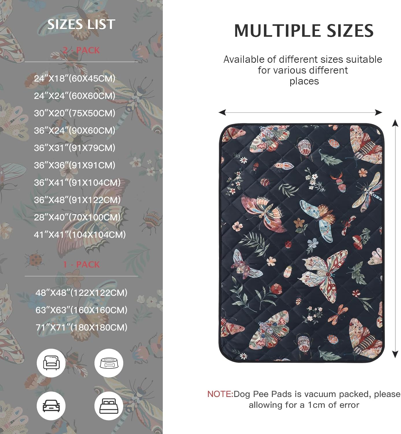 IEUUMLER Washable Pee Pads for Dogs, 2 Pack Insect Pattern Reusable Waterproof Puppy Potty Pads, Non-Slip Absorbent Pet Training Pads for Playpen Crate Bed EU014