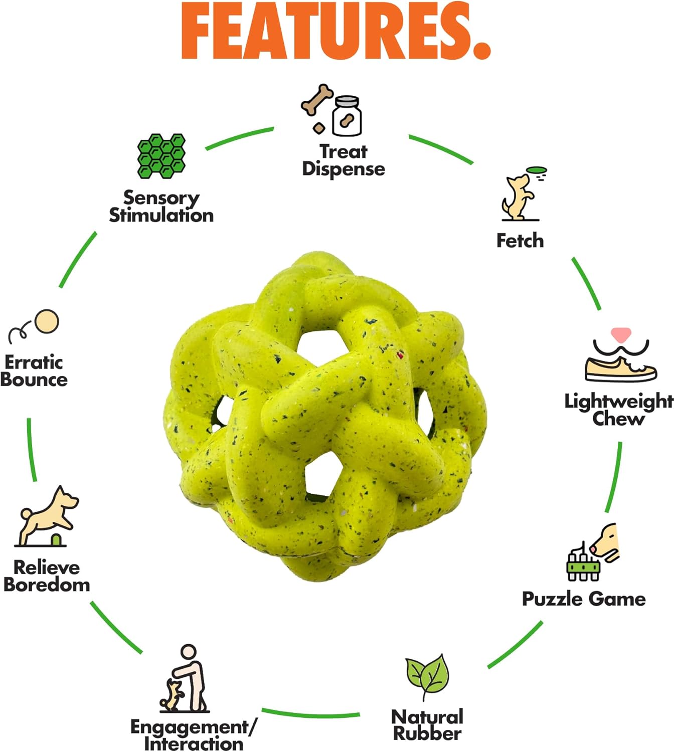 - TRY ALL OUR DOG TOYS: Expand your pupās toy collection with our full lineup of engaging dog toys! In addition to this dog treat dispenser toy, we offer a variety of fun options, including dumbells, tug of war ropes, dog treat dispensers, balls, bones, and donuts. Each toy is designed for different types of play, helping to keep your dog entertained with new and exciting challenges.