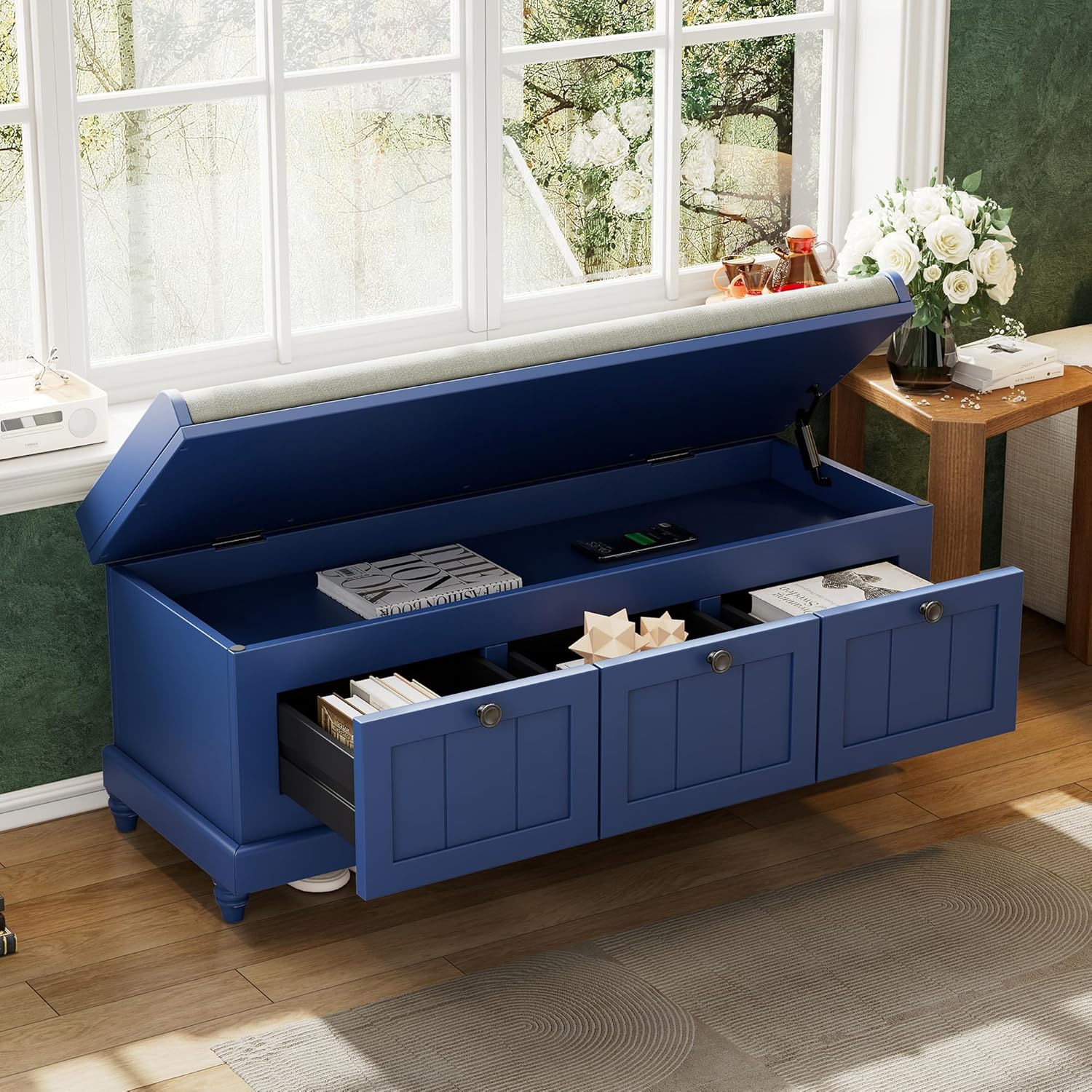 - Ample Storage Space: Three drawers provide plenty of room for organizing toys, shoes, or daily essentials, while the hidden storage compartment under the cushioned top is perfect for books, thin blankets, or other items. Functional and stylish for entryway benches, bedrooms, or living rooms.