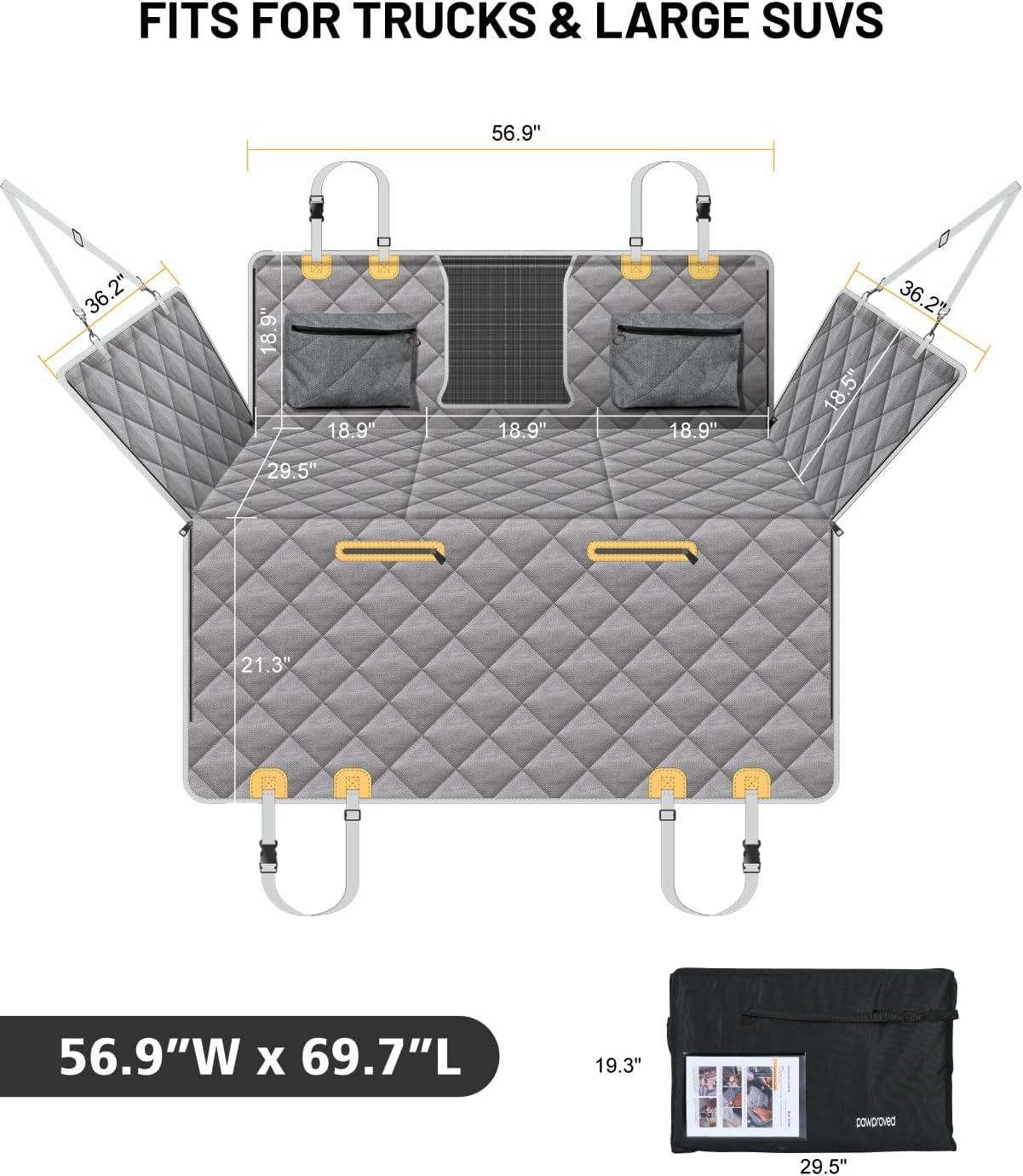 - Extended Activity Space: Our car hammock (56.9βW x 29.5βD) prevents footwell sliding, expands space by 40%, and ensures safety for movement and stretching to ease travel anxiety. Offers full rear-seat coverage, ideal for large breeds, older dogs, or multi-dog households.