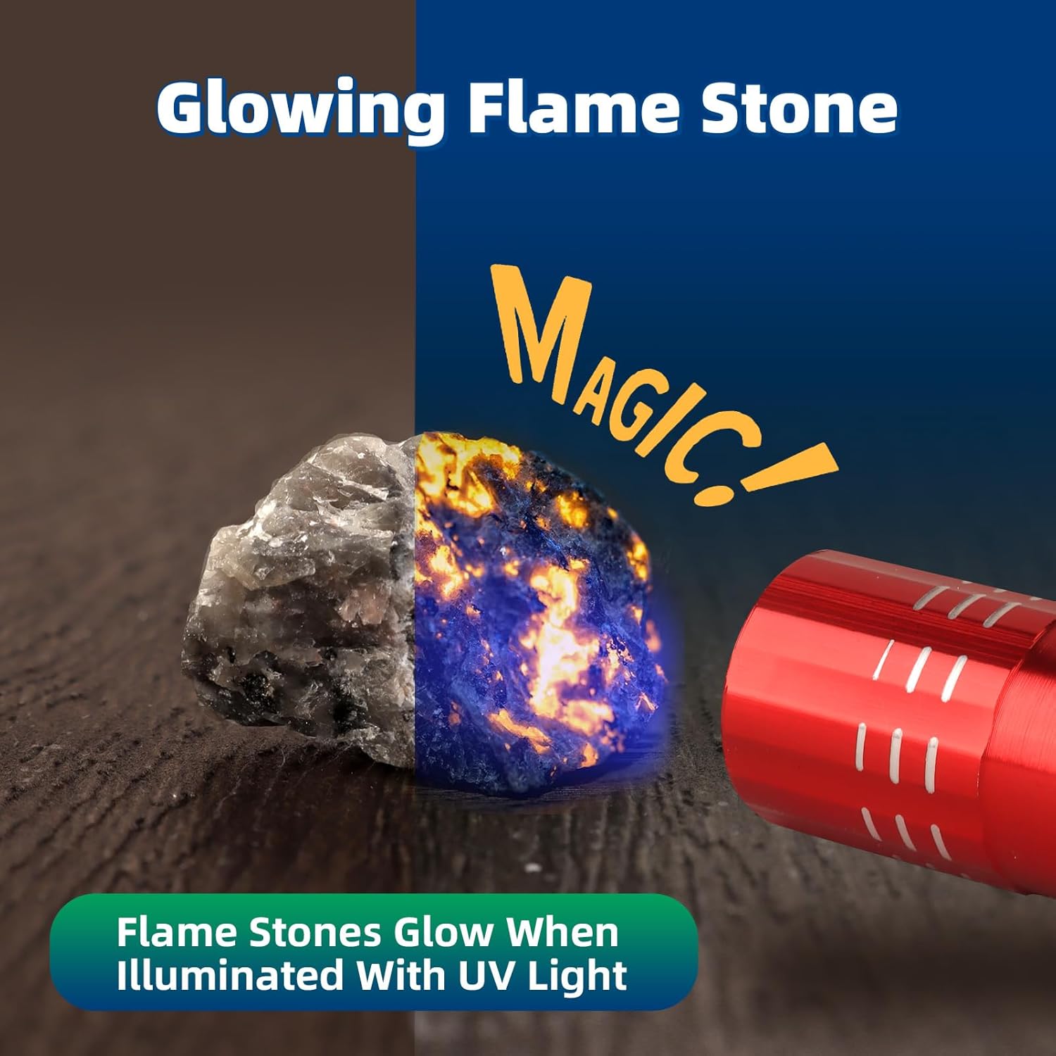 - 【 Special Effects Digging Kit 】 This digging kit includes a volcanic rock that reveals hidden textures under UV light and a luminescent rock that glows in the dark. These special features add an element of surprise to the excavation process.