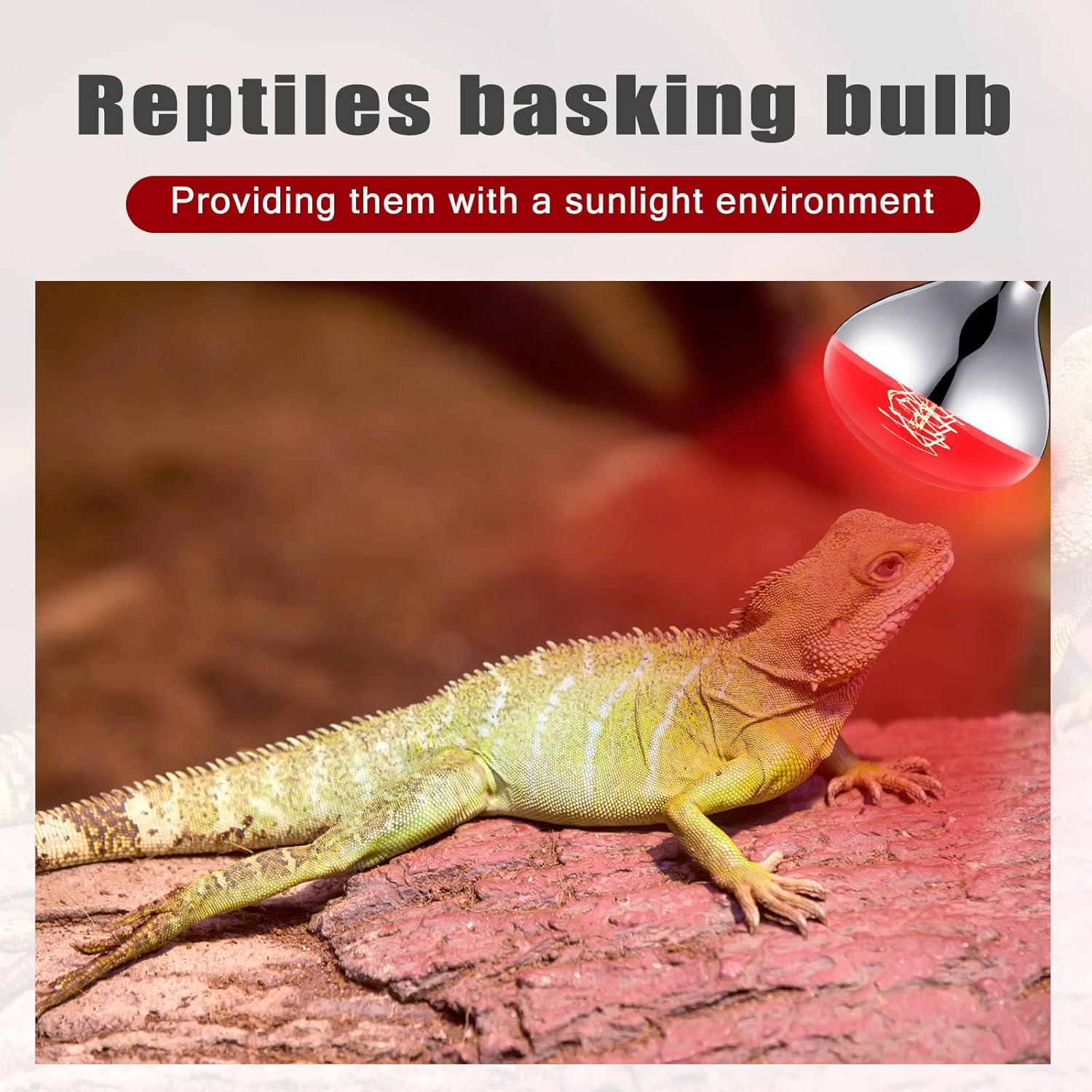 - UVA Irradiation Effect: the 250 watt incandescent light bulbs can be applied for 4 to 6 hours a day and are replaced every 3 months, providing an ideal UVA irradiation effect that is good for reptiles, making them more active, and creating a comfortable environment; This feature is important for pet owners who want to provide their reptiles with a warm and comfortable environment that improves their natural habitat; Please do not touch the surface with your hands when the bulbs are working
