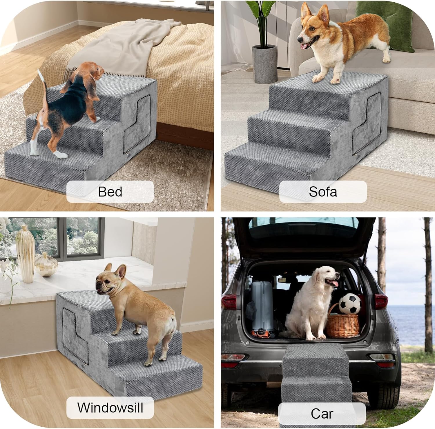 - EASY TO CLEAN: The cover of dog steps can be removed for machine or hand washed to give your pets a fresh and cozy stair. Please note that the inner foam is not washable