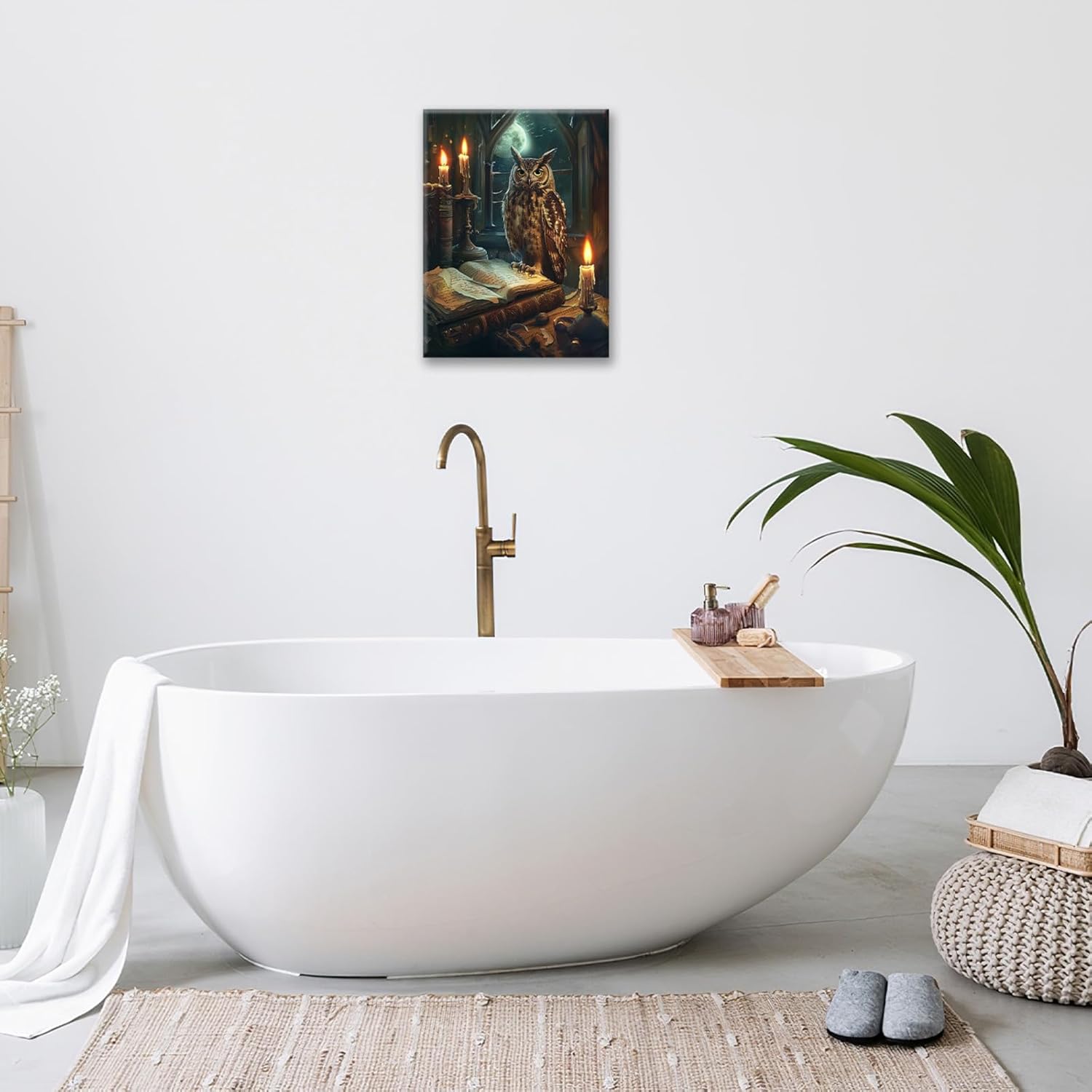 Owl Book Wall Art Vintage Canvas Wall Decor Prints Framed Painting Owls Pictures Gifts Artwork for Bathroom Living Dining Bedroom 12"x16"