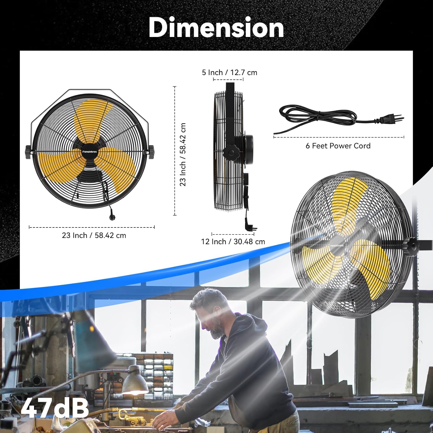 - ๐๐จ๐ฐ-๐๐จ๐ข๐ฌ๐ ๐๐๐ฌ๐ข๐ ๐ง - The heavy-duty wall fan operates at a high speed of 4580 CFM with a noise level of only 60dB, which is lower than the industry standard, creating a quieter gathering or working environment