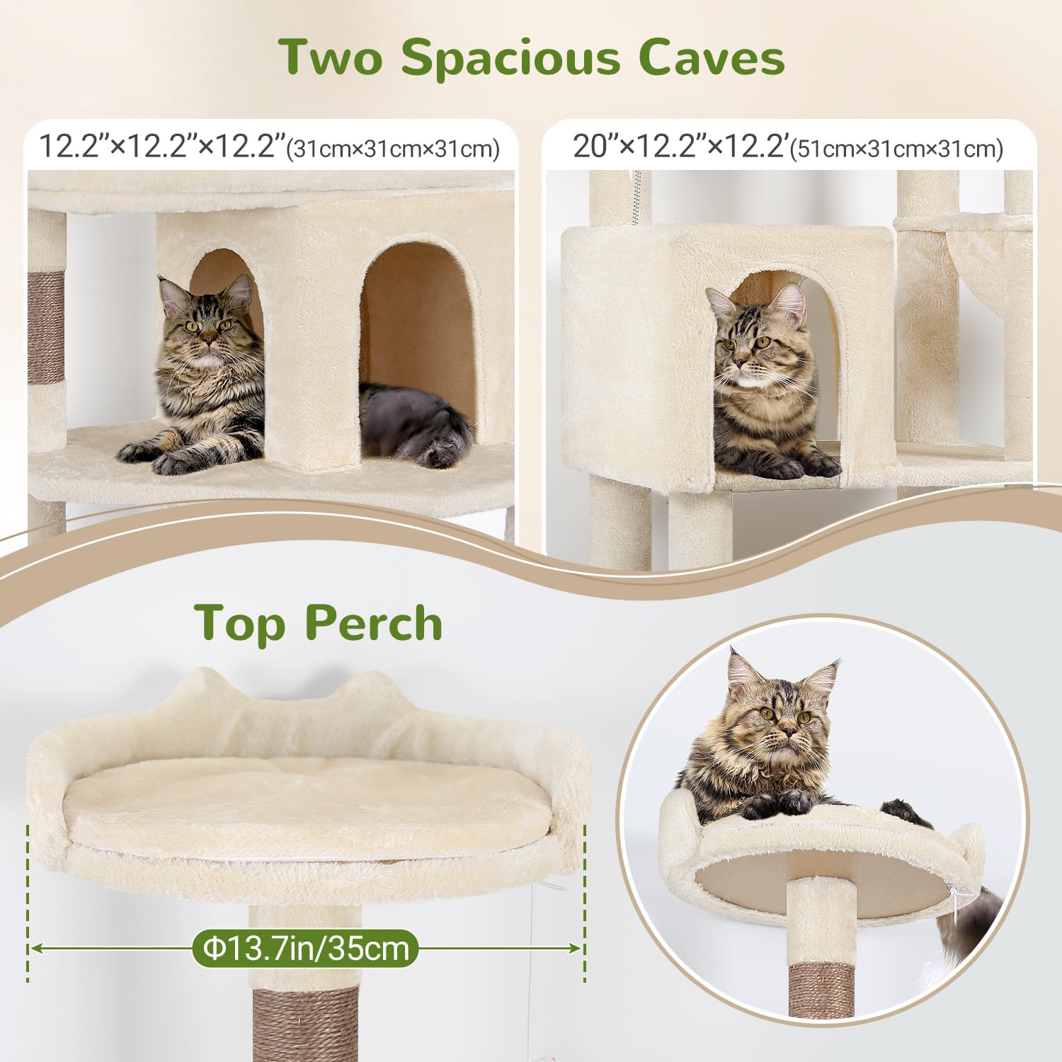 Globlazer Heavy Duty Cat Trees for Large Cats, Sturdy 72in Maine Coon Cat Tree for Large Cat 20 lbs+ Heavy Duty Cat Tower for Adult Biggest Cats with 6 Scratching Posts, Hammock, S72, Beige
