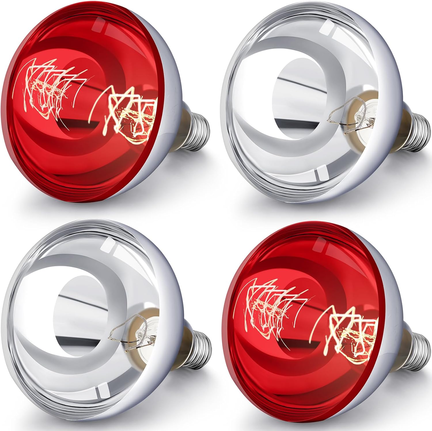 VIHOSE 4 Pack 250 Watt Heat Lamp 120v R40 Heat Lamp Bulbs Glass Incandescent Light Bulbs Incandescent Heating Lightbulbs for Reptiles Chicks Food Puppies Bathroom, Use E26 Base (Silver,Red)
