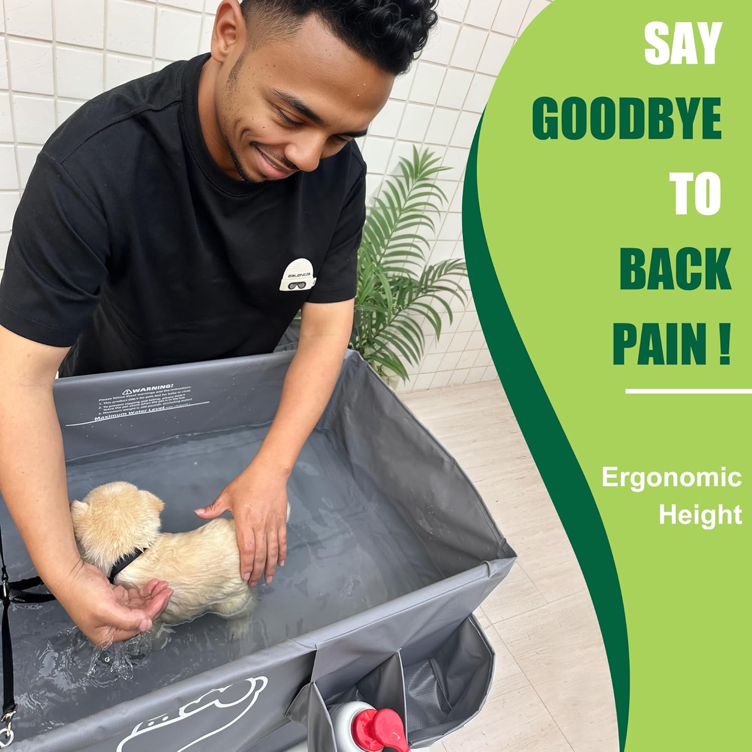 - 1. Elevated Waist Height Design: Say goodbye to back pain! The Amlmpet dog bathtub features an elevated stand, allowing you to bathe your pet at a comfortable height. No more bending over—perfect for at-home pet bathing,grooming and cleaning.