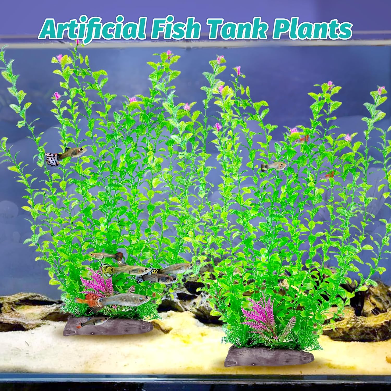 - TALL AQUARIUM PLANTS EASY TO MAINTAIN : Aquarium plants plastic do not require specialized lighting, fertilizers or carbon dioxide. Compared to real plants, large aquarium plant is very easy to clean, saving time and effort and eliminating the hassle of maintenance. These fish tank plants for decorations look lifelike and can be used for a long time, making it easy for you to enjoy the wonders of the aquarium world. Artificial aquarium plants size: 20.4 inches (H), ceramic base: 5.9 ร 3.1 inches. 2 pcs artificial aquarium plant to make your aquarium vibrant and more beautiful