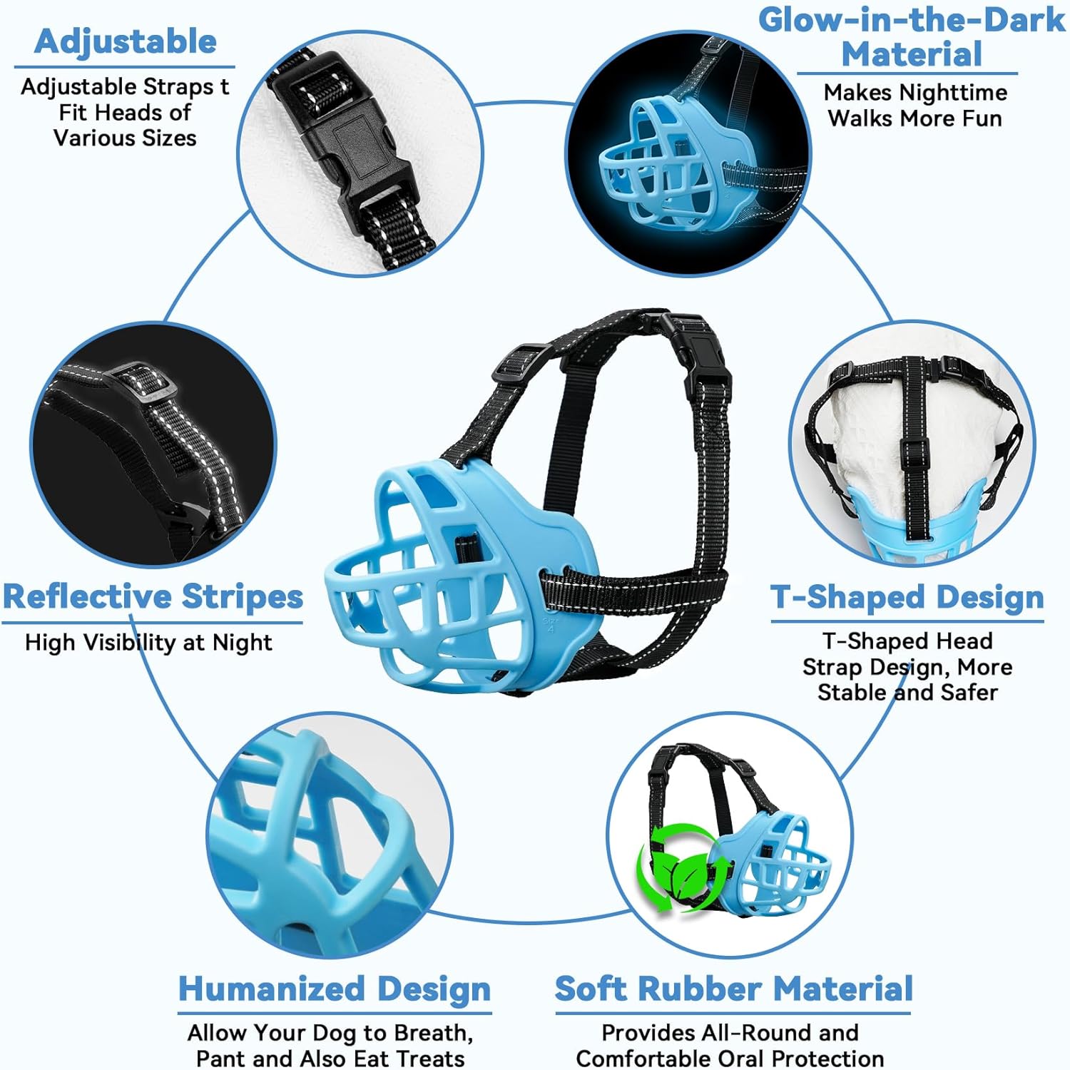 - Easy to Put on and Remove: Designed for Convenience, The Adjustable Straps on Our Dog Muzzle Allow for Quick and Secure Fitting. The Ergonomic Design Ensures a Hassle-Free Experience for Both You and Your Dog, Making it Ideal for Daily Walks, Training Sessions, Or Visits to the Vet. Reflective Strap Design Provides Night Travel Safety