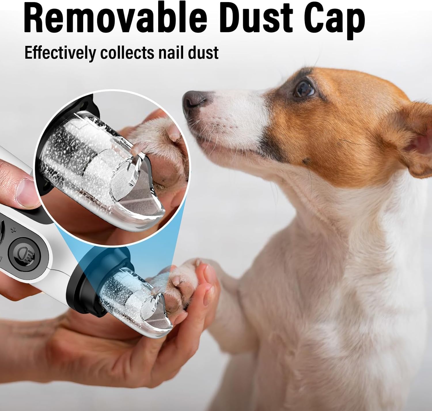 - 【3 Grinding Ports & Extra Dust-Free Cap】 Our pet nail grinder for dogs has 3 grinding ports cater to pets of all sizes—simply select the right port and speed based on your pet's nail hardness and size. An extra detachable plastic sheath surrounds the grinding bit, collecting nail dust for easy disposal and keeping your grooming area clean.