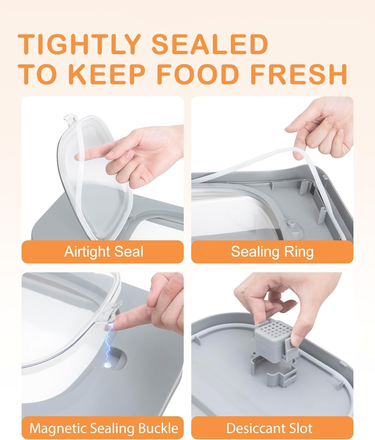 - Airtight Sealing Design: These airtight dog food bins feature a double air-tight seal, ensuring your pet food stays fresher longer, free from moisture