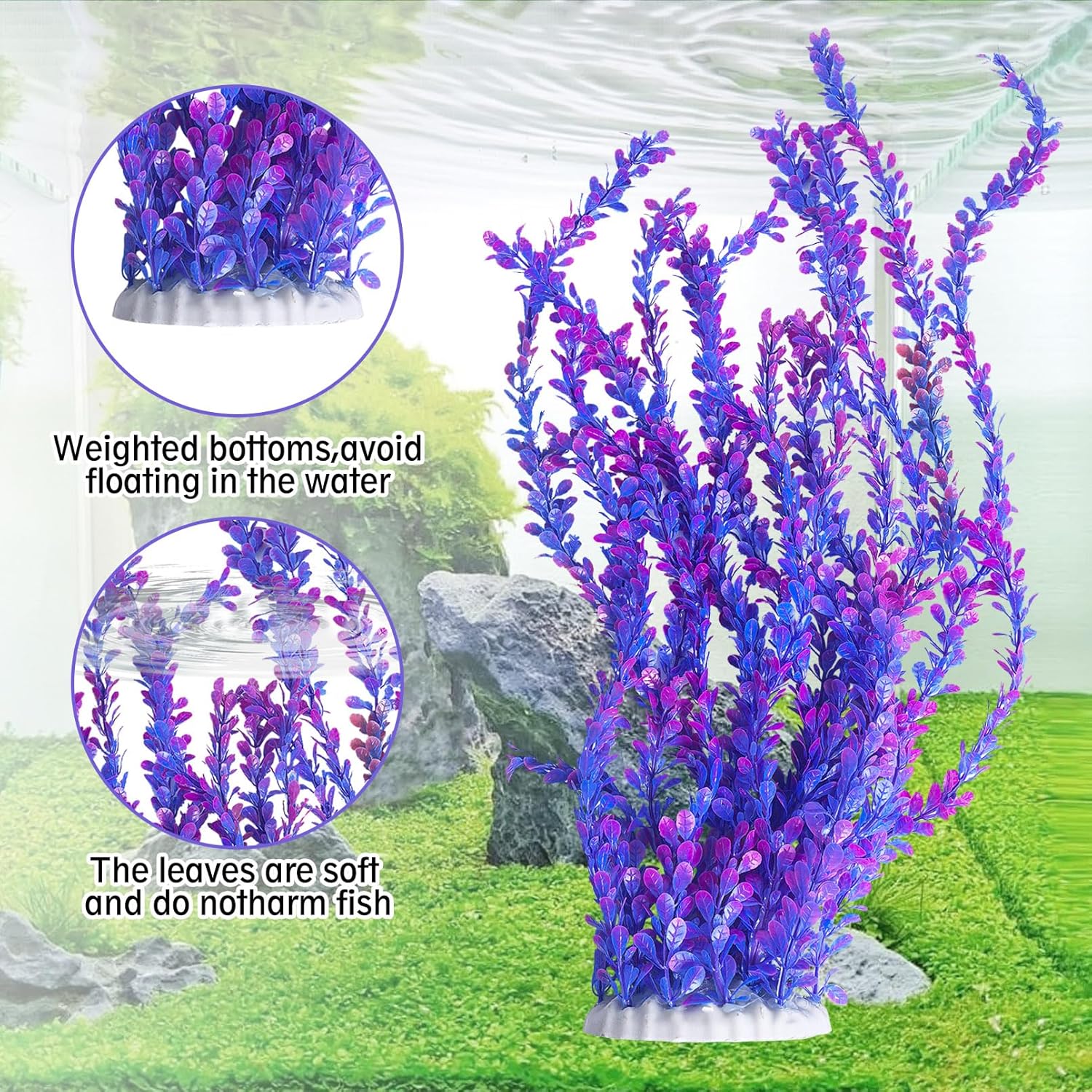 - RELIABLE MATERIAL : Our fake water plant leaves and roots are made of soft plastic material that won't affect the water quality. The leaves do not have sharp edges and have a soft texture, which can effectively avoid any physical damage to the fish while swimming or playing, and can better beautify the e-nvironment, maintain stability and not fade. Provide a comfortable and clean living e-nvironment for fish. Whether placed in a saltwater e-nvironment or freshwater e-nvironment, it can be perfectly adapted