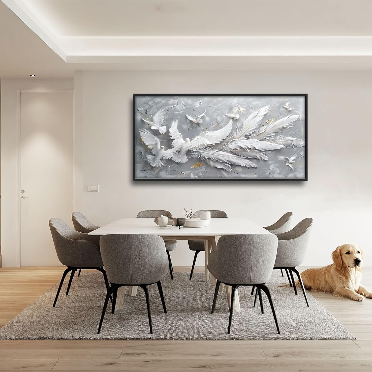 Quorin Feather Dove Bird Large Wall Art White Gray Holy Wings Pictures Peaceful Birds Flying Wall Decor Canvas Print Painting Artwork for Bathroom Living Room Bedroom 60L x 30W