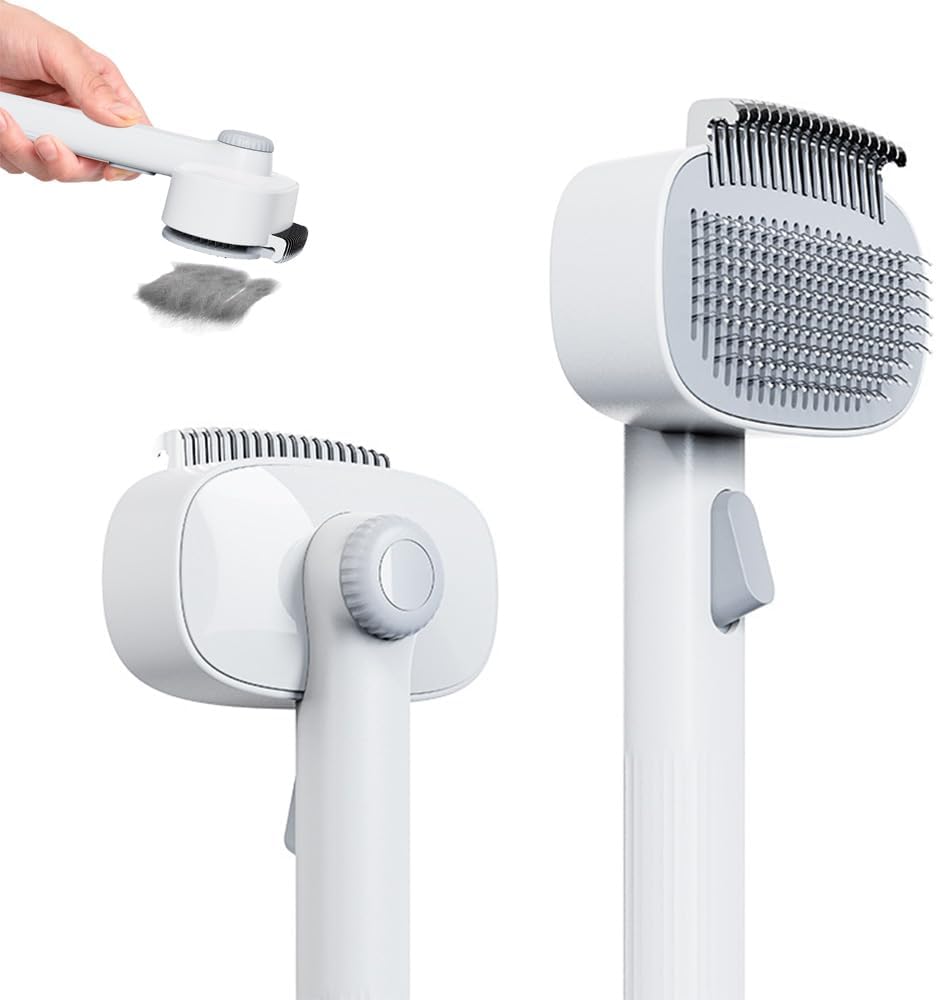 - 🌈【Rounded Head Design】Smooth edge design allows you to brush your pet's hair without hurting it, the cat hair brush comes with a release button, clicking the self-cleaning button retracts the bristles and wipes away hair from your pet's accessories