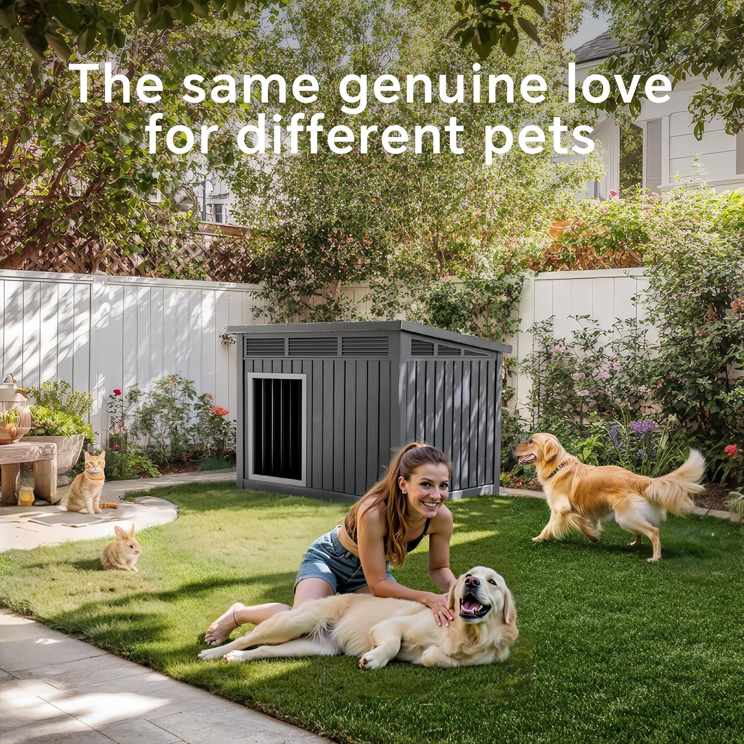 - WIND AND WATERPROOF: This outdoor large dog house is designed to withstand all kinds of wind and rain, perfect for outdoor use. The asphalt roof is suitable for any weather and provides your pet with reliable protection from the elements and other harsh conditions, ensuring a safe and comfortable space for your furry friend all year round.