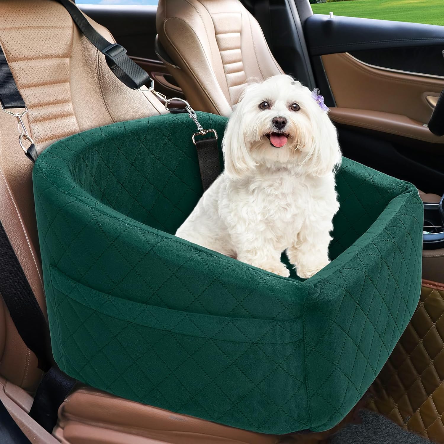 Dog Car Seat for Small Medium Dogs,Detachable Washable Dog Booster Seat Under 30lbs, Pet Car Seats Travel Bed with Storage Pockets and Safety Belt(Green)