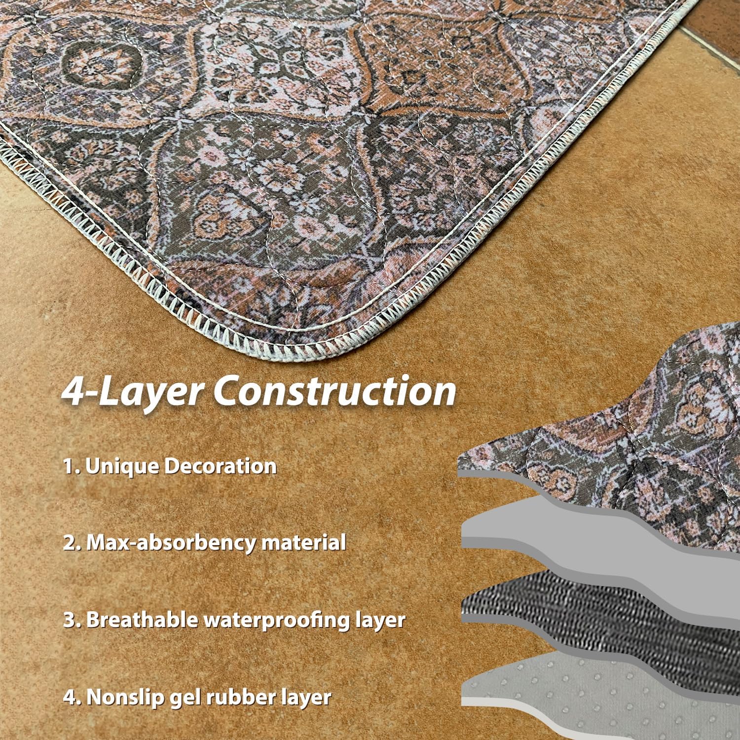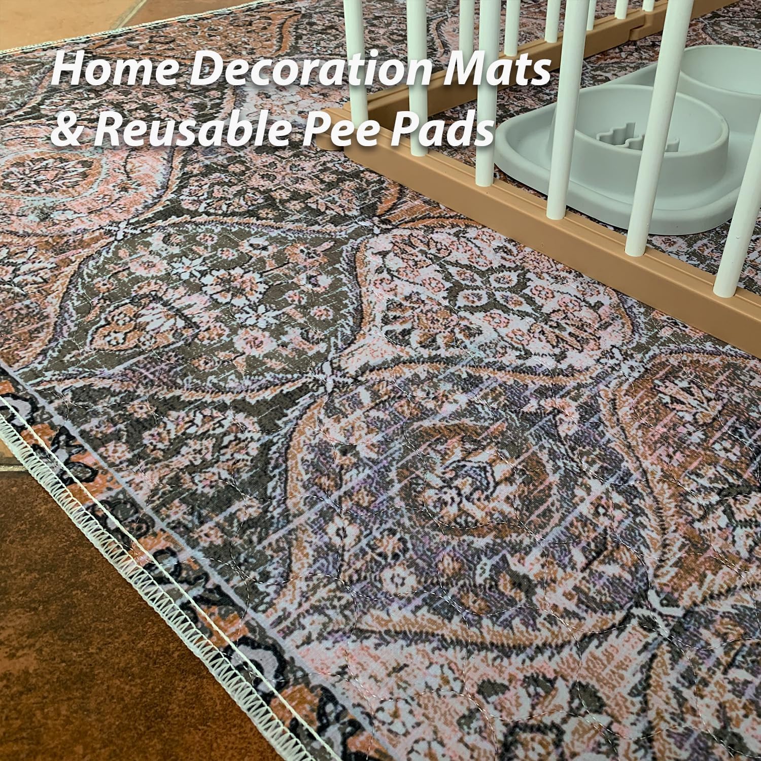 nunubaby Washable Pee Pads for Dogs, Stylish, Non-Slip and Leak-Proof Pee Pads. Reusable Potty Pads for Dogs for Crates and Floors.(Brown/Multi, 24" x48")