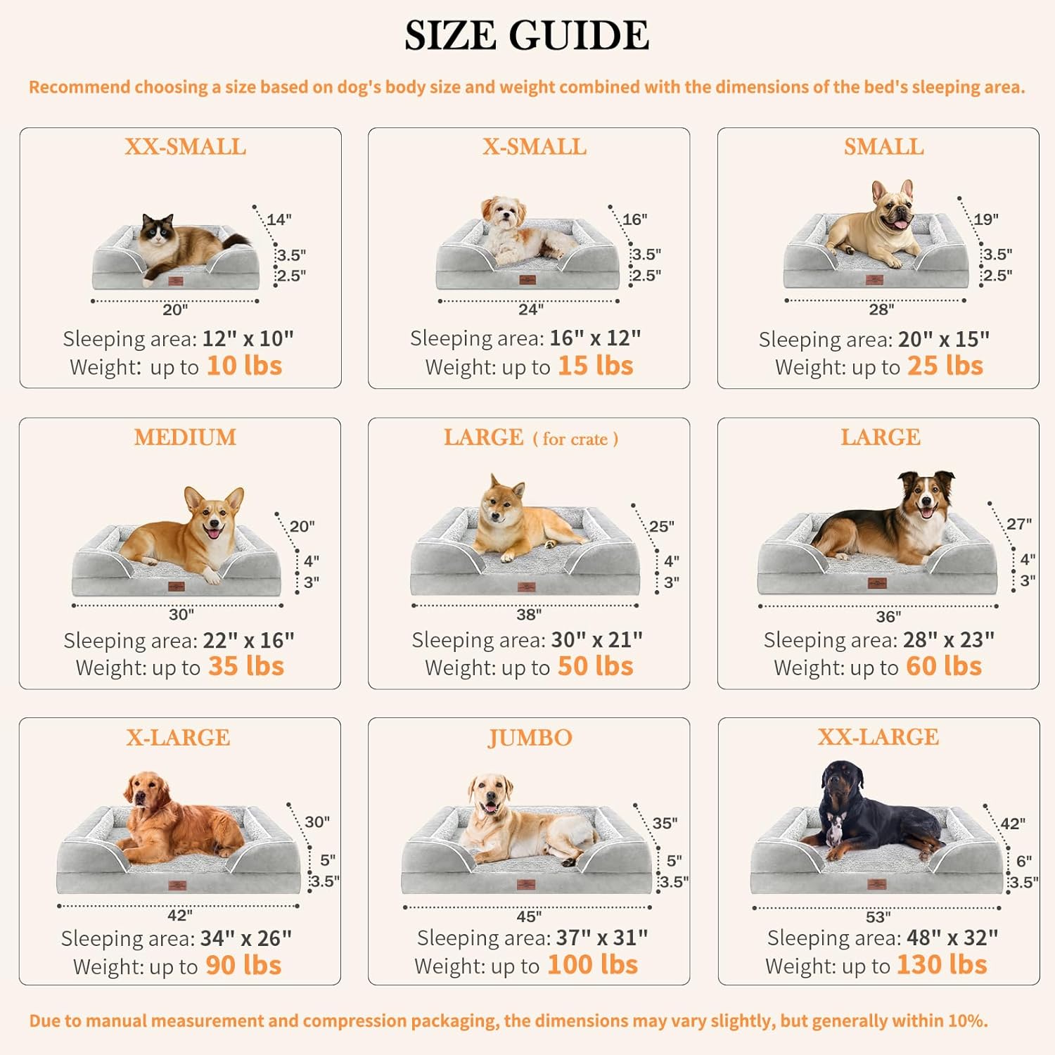 Comfort Expression Medium Dog Beds Waterproof Orthopedic Foam Dog Sofa Beds for Medium Large Dogs Comfy Pet Bed with Washable Removable Cover & Non-Slip Bottom(Medium,Grey White)
