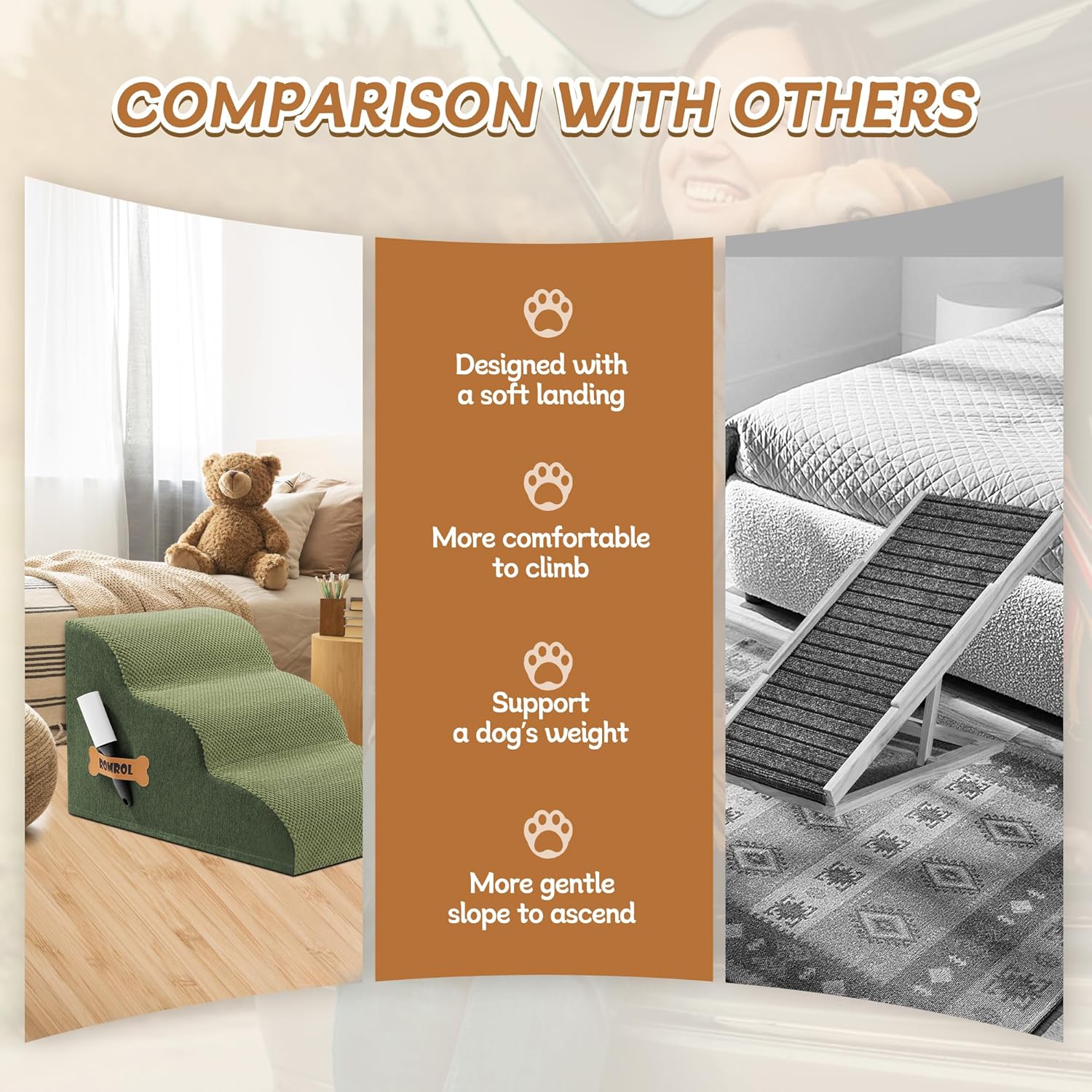 - 33D REBOUND HIGH-DENSITY FOAM: Our 33D foam delivers 63% faster rebound vs standard foam with enhanced weight capacity. Perfect for puppies, senior dogs, and pets recovering from surgery to access beds/couches safely. Dual-purpose as cat stairs for multi-pet households