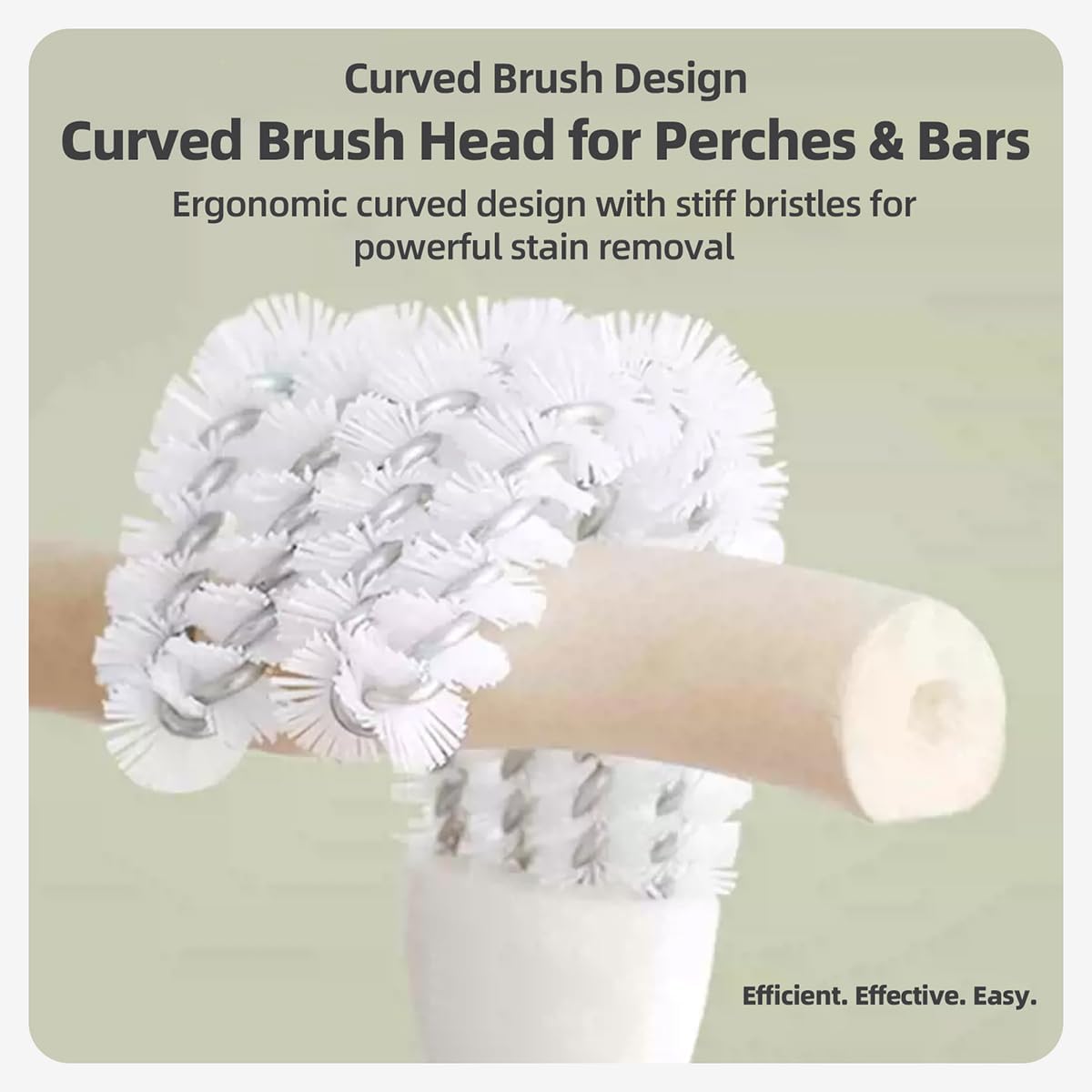 - Curved Brush Head for Precision Cleaning β Flexible angled bristles contour around perches, feeders, and cage bars to scrub stubborn droppings and food residue from tight spaces, ensuring thorough sanitation for parrots, cockatiels, and other pet birds