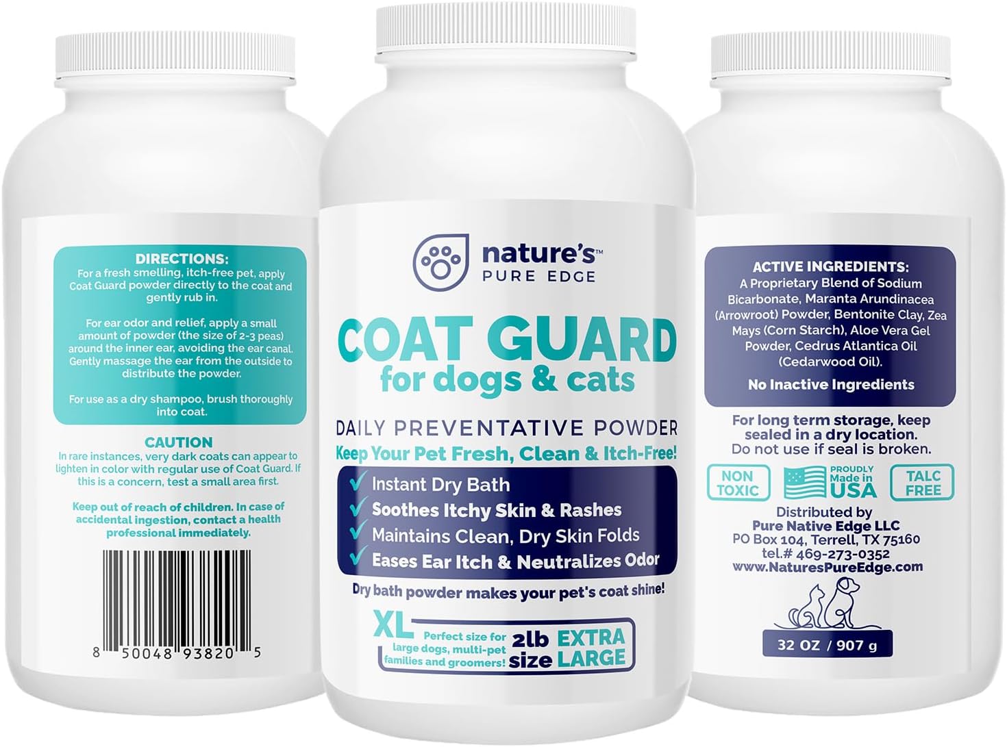 Coat Guard Dry Shampoo for Dogs and Cats - Extra Large 2 lbs Jar, Dog Dry Shampoo Powder, Waterless Dog Shampoo, Anti Itch Relief, Cedar Scented, Anti Dandruff, Hot Spots, Nature's Pure Edge
