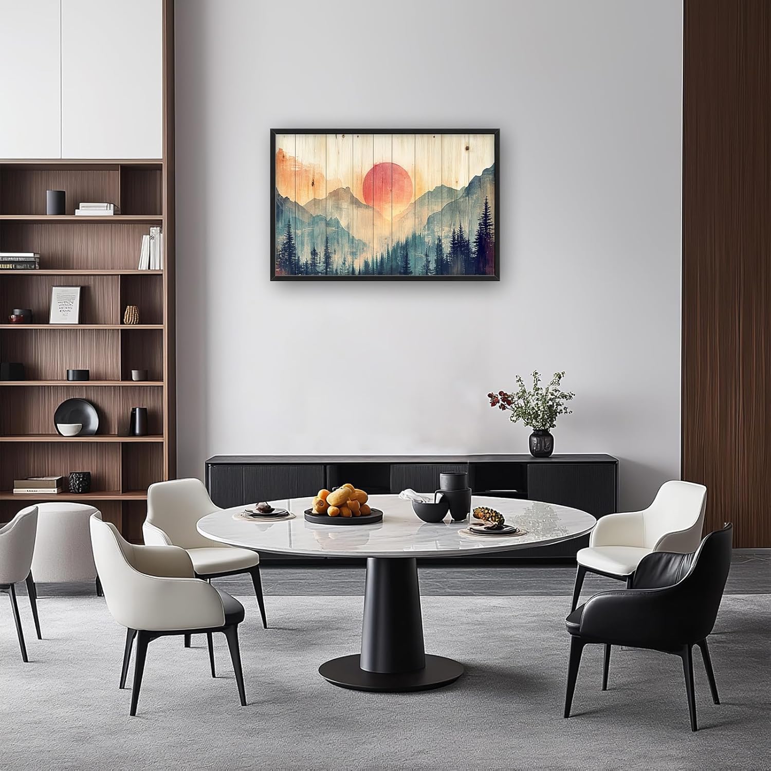 Framed Large Cabin Mountain Wall Art for Living Room, Oversized Rustic Forest Wall Decor, Rustic Nature Landscape Canvas Painting Sunset Pictures Home Decoration for Bedroom Office 36"x24"