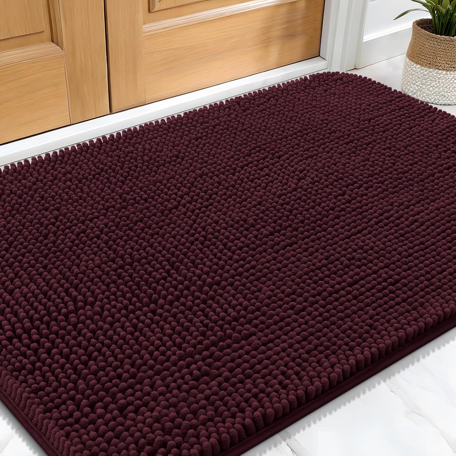 - [LOW PROFILE AND EASY CARE] OLANLY's Chenille Dog Door Mat boasts a slim 1-inch profile, offering a sleek and streamlined appearance. The thoughtful design ensures your doors won't get stuck, and the mat stays securely in place. Cleaning is a breeze β simply shake off any dirt or debris, or toss it in the washing machine for a deeper clean. It dries quickly, so you can be sure it's ready to use again in no time.