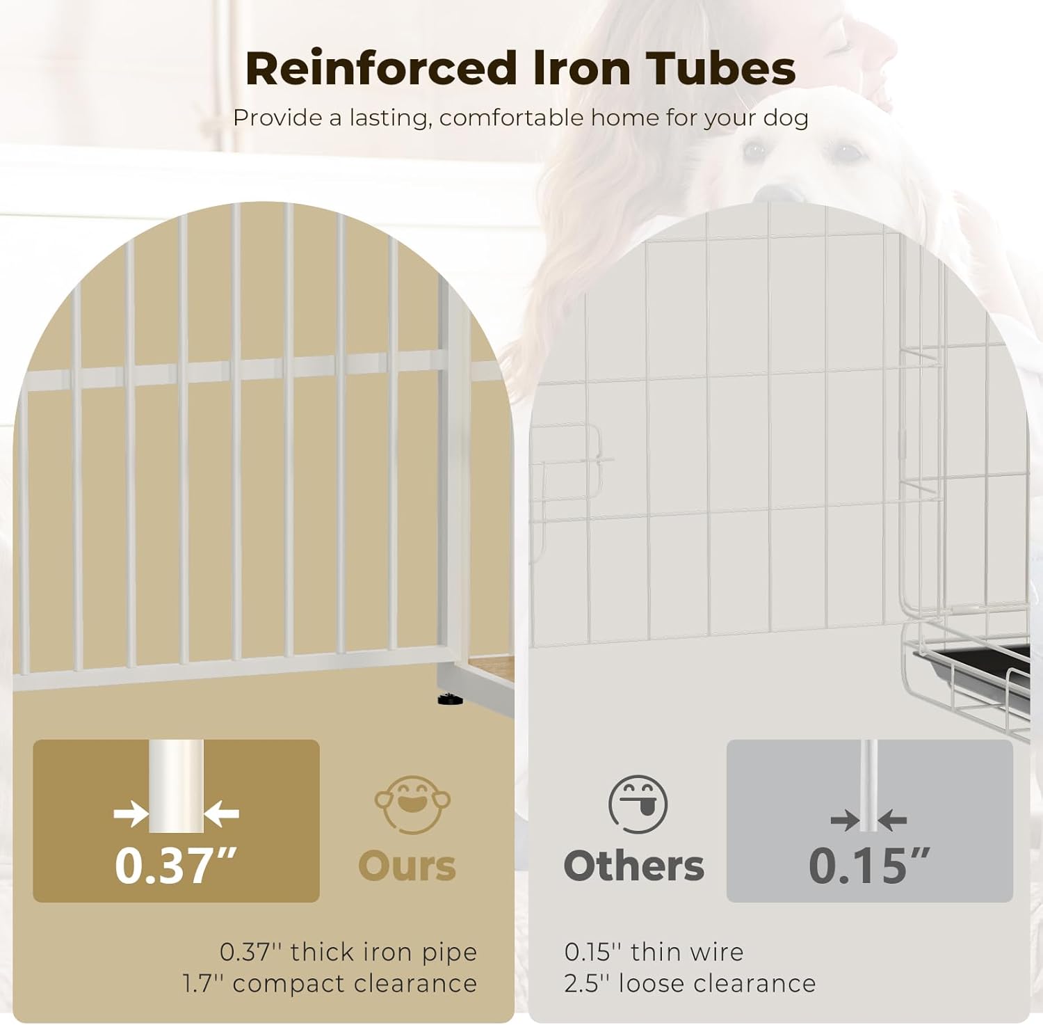 - 【Sturdy and Chew-Resistant】This dog crate furniture is made of premium particle board and iron pipe, which is stronger and more chewy; It will accompany your dog throughout the growing stages; It's an ideal gift for your dog